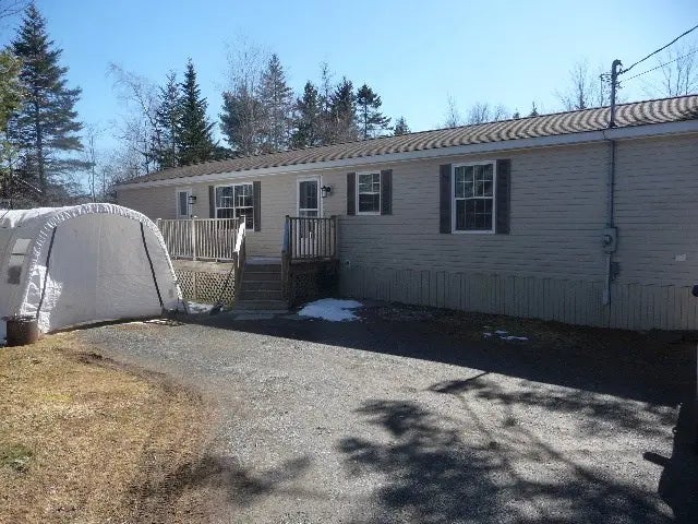 "Location, Location" Take a peak at this one. This 12 year old mini home is situated on almost an acre of land and its just a few minutes off the 102 at Exit 7. Surrounded by mature trees and lots of privacy, 3 bedrooms and 1 bath cozy pellet stove, open concept and its great for the 1st time home owner or just downsizing. Lots of room for the kids and pets to play.Large decks on the front and back with 2 sheds for the handyman. You cannot go wrong on this one. Come take a look.