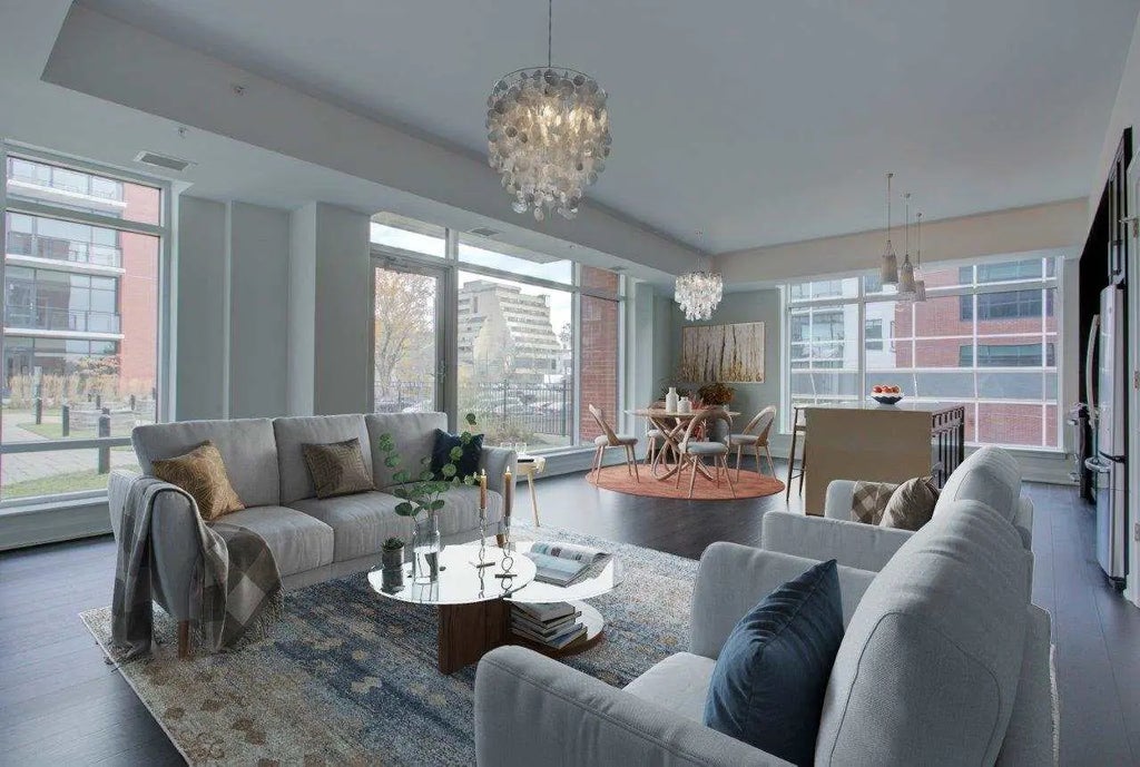 114 Avery at 1,028 square foot is a well designed one bedroom plus den condo in the heart of Downtown Dartmouth. This condo also boasts a large 13'10" x 6' terrace and stunning floor to ceiling windows. The great room has awesome floor plan flexibility and generous space for living room and dining room, kitchen with oversized island with solid surface counters and stainless steel appliances. The Avery offers amazing amenities such as rooftop terrace with full BBQ kitchen, firepit and sweeping views of Halifax Harbour, fitness center with sauna, social room and other neat features such as bicycle and kayak storage and hobby room. Heat, air conditioning, hot and cold water are included in the condo fees as well as professional property management, on-site super, indoor heated and secured parking & storage. Be sure to book a tour of the many suites that are available at The Avery today! TLA: 1028 sf