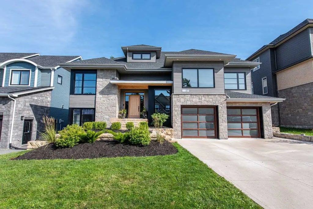 Welcome to 27 Weybridge Lane on one of the most sought after streets in all of Bedford, this custom built home was designed and built by the owners of the company that helped shape the look and feel of this gorgeous cul-de-sac. Be prepared to be 'wowed' from the moment you walk through the door into the airy bright foyer, and open concept great room, custom kitchen with double fridge, custom bar and ten foot island. The home's layout feels natural and breezy with large patio doors leading to the beautifully hard-scaped back yard and inground pool. On the main floor you will also find a laundry room, office, large pantry, master bedroom and ensuite! Upstairs there are three large bedrooms, kids play room and spacious bathroom. The fully finished basement has in floor heat, mudroom, sports closet, guest bedroom and bathroom. This home was built for efficiency with ICF construction and a natural gas heat pump that not only heats the home, but the pool, bbq and fire pit as well!