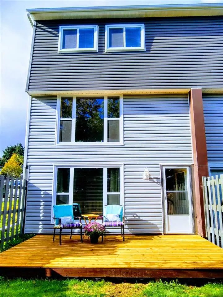 This premium end-unit, three level, three-bedroom, 1.5 bath, 1400+ square foot condo townhouse features a rear walk out, backs onto lush greenery and has been extensively renovated and upgraded to be in like new condition for 2020. On one of the quiet tucked away streets with elevated glimpses of south end Halifax and moonrises in season. Upgrades include new 125 Amp breaker panel, new digital thermostats, kitchen and bathroom plugs, three upgraded closet enclosures and doors added, lower level home office / laundry combo room completely renovated and reinvented in 2020 from foundation out with insulation, dry wall, baseboards, trim, lighting, quality vinyl flooring. Radon machine new 2019. New quality custom cordless blinds installed on all levels in 2020 add lighting and privacy options. Original pine panel ceilings and beams accent the newer easy clean laminate floors and are in excellent condition adding character and charm. All 3 levels boast plenty of natural light and there are two large picture windows in back overlooking the new custom 16-foot pressure treated sun deck and fully fenced yard with hand crafted gate. This condo is part of one of the few corps which include exterior maintenance in the condo fees. The condo boasts newer windows, siding and roofing, all maintained by the condo corp! Great investment. Located handy to downtown Halifax in trendy and sought-after Cowie Hill, the neigbourhood is a perfect mix of working professionals, families and retirees. Close to city, Long Lake Provincial Park, Chocolate Lake, all levels of great schools, shopping, and the Capt. Spry Recreation Centre the location couldn’t be better for the value! Ready for owner occupied or rent immediately. One parking and appliances included. Pragmatic alternative to huge mortgages while getting the large size and custom upgrades. You'll love this 'wow factor' home, book your personal showing today!