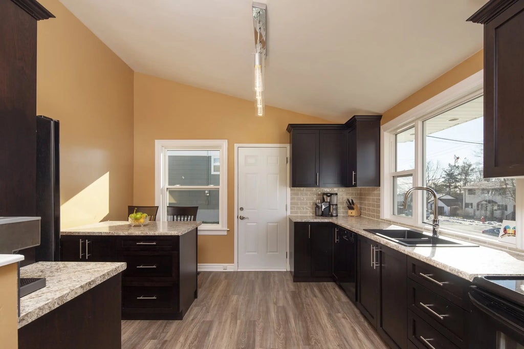 Welcome to 5 Belle Vista Drive, an updated family home, single family detached home with a detached garage, 4 br / 1 bath nestled in popular and family friendly Woodlawn. The back split layout features a large living room with vaulted ceiling and a wood burning fireplace, stunning new kitchen with silgranit sink and black appliances, all new windows, updated electrical - and carpet free. You will find 3 fair size bedrooms and an updated bathroom on the upper floor. The lower level consists of a large extra room - currently used as an exercise room, a rec room, a laundry room, and lots of storage within the crawl space. Single detached garage in addition to a shed. Ready to move in! Call today for your private viewing!