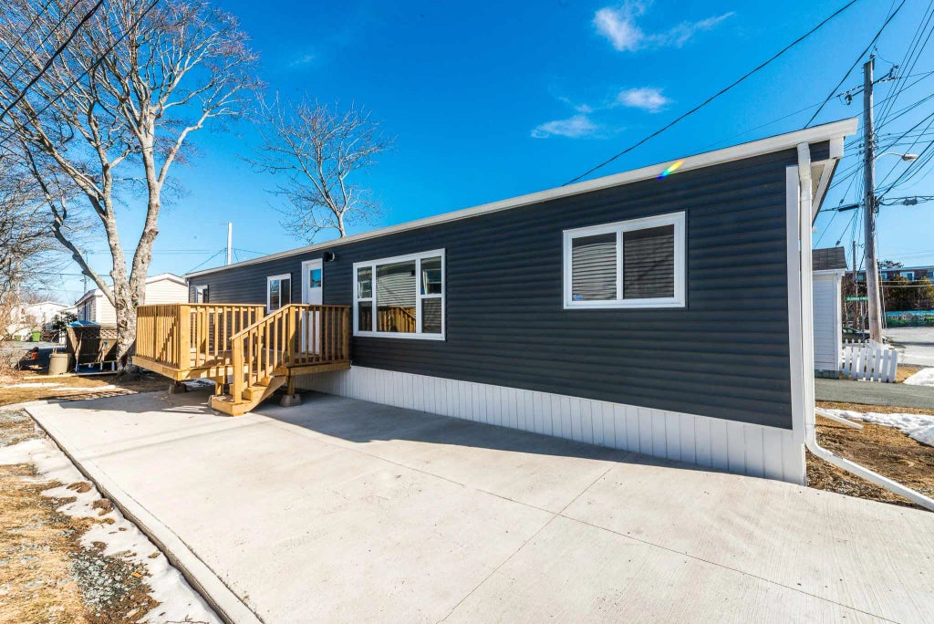 Homeward bound to the urban living experience! Take advantage of this affordable chance to own a comfortable home in the heart of the city. Quiet location just minutes to desirable downtown Halifax. Pull up to a gorgeous new concrete driveway. This home has been fully renovated and is move-in ready. Complete with all new gravel underneath, new Low-E glass windows, new decks, siding, skirting, seamless rain gutters and down spouts, outdoor lighting and exterior doors. The layout is two bedrooms with one at either end and living area in the middle. Freshly painted throughout, all new kitchen, all new bathroom, new 12mm laminate flooring, interior doors, drywall, trim, lights, thermostats, baseboard heaters and electrical outlets including GFI and USB. New Cooper & Hunter ductless heat pump for year round temperature control is also included. Live with quick access to the 102 Highway, Bayers Lake, Clayton Park and the MacKay Bridge. Available for immediate possession and won’t last long in Fairview Estates where homes do not come up often.