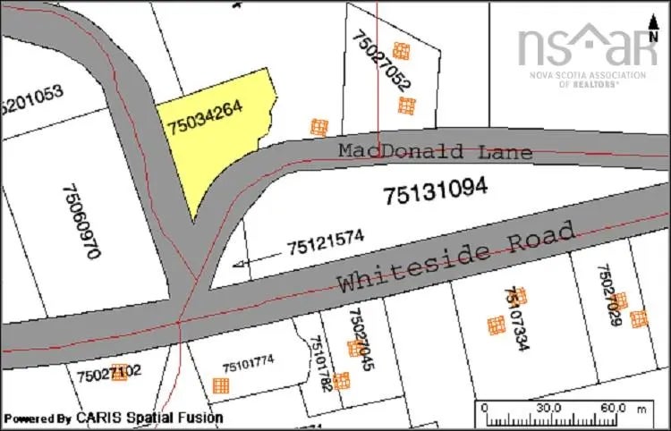 Almost one acre lot on corner of Basin Road and MacDonald Lane, Whiteside. This treed lot has road access with power and telephone at the road. Municipal Water hookup available. Small brook running at the edge of the property.
