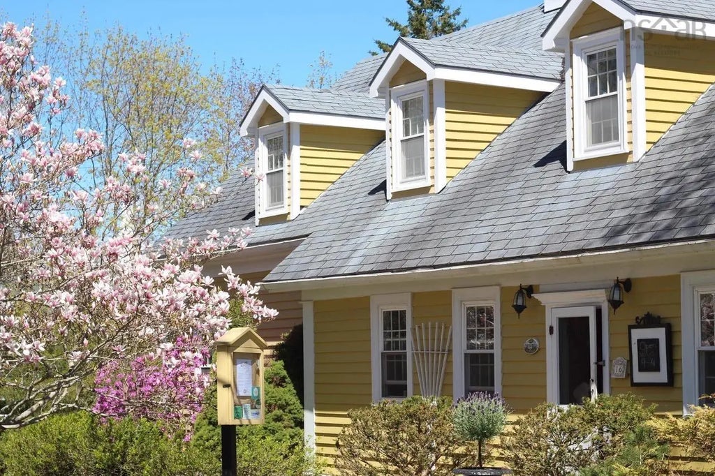 Most recently operated as a thriving restaurant in the heart of Mahone Bay, the possibilities with this historic property are endless. Sitting on a double lot, the beauty of this home begins outside, nestled amongst large mature trees and established gardens. Walking though the main entrance you’re greeted by a large sitting room with a large fireplace mantel and bookshelf lined walls. Continuing through, the two large dining rooms are full of character with beautiful moldings and rounded doors. The large commercial kitchen creates ample opportunity for the kitchen of your dreams. Two small bathrooms near the entrance could be transformed into one large room. Tucked away upstairs (perfect to rent for extra income added living space) you’ll find a spacious apartment with gorgeous softwood plank floors, complete with a full bath, and large dormer windows that let the natural light flow though and kitchenette- All within the walls of one of Mahone Bay’s oldest buildings. Located less than an hour from Halifax