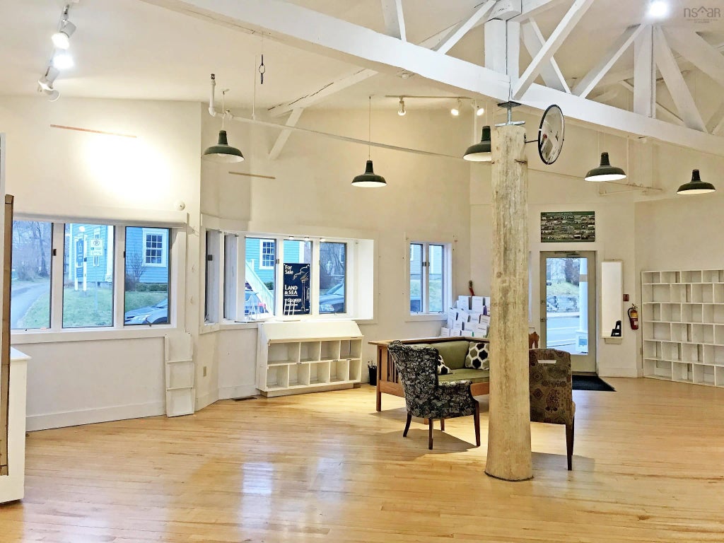 L&S #1242. Location, location, location. Arguably the BEST commercial-retail location in beautiful Mahone Bay, for more than 30 years Unit 104 has been home to successful retail, both as art galleries and, for the past 10 years, the ever popular Have a Yarn shop. One of just 4 commercial condos in 'The Moorings', itself an integral part of the Mahone Bay waterfront streetscape, this stylish 1190 sq ft end unit features soaring ceilings with massive exposed beams, wood floors, ducted heat pump system for heating & cooling, and terrific lighting. The open layout comprises L shaped showroom (easily partitioned) plus an office/storage area (11x19) and 2 piece bath. Highly visible both by car and foot, with great display windows, a covered entry and an extra wide condo sidewalk conducive to high foot traffic. Unit 104 is well suited to a wide variety of retail, office, medical or other commercial ventures. Brand new heat pump installed Jan 2023.  Directly opposite the Settler's Museum and flanked by other successful long standing small businesses (spa, real estate office, Amos Pewter), Have a Yarn's main street location along the waterfront is outstanding.  Mahone Bay is a vibrant seaside town (considered by many to be the prettiest small town in Canada), a wonderful year round community and, of course, a perennial favourite with tourists from all over. Its less than an hour to Halifax and under 15 minutes to Bridgewater or Lunenburg.  ** The building is a non-smoking building (inside and out), fully sprinklered and monitored **