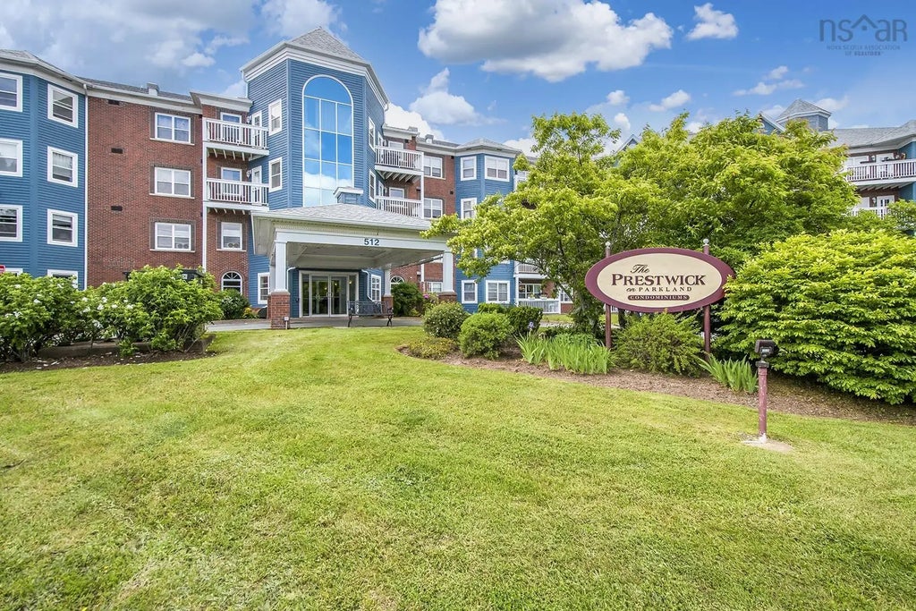 Welcome to The Prestwick Condominium. Featuring 3 bedrooms, Primary bedroom with a walk-in closet and ensuite, second full bath, open concept kitchen, dining and living room area all in 1500 Sq Ft of luxury and maintenance free living. Adding to this, there are 2 Spacious balconies overlooking Parkland Drive. The open concept kitchen features plenty of cupboard and counter space with all updated appliances. The interior finishes are hardwood and ceramic. Get the benefit of the in-unit Laundry room with extra storage space. You can take the elevator or the stairs to reach the building amenities which include a Gym with a hot tub, one guest suite and social room. The elegance of the lobby immediately sets a classy ambiance, which tells residents and guests that they have arrived somewhere truly special. Just 2 minutes walk to the metro public transit and less than 5 minutes drive to Bayers lake and all its shopping amenities . The condo fees include: Common area cleaning, snow removal, landscaping, equipment maintenance, general repair, lights/power for common area, heat and hot water for the unit, administration, insurance, contribution to contingency reserve funds and underground parking/storage. You can move in and enjoy the luxury and maintenance-free living, or use it as an investment and enjoy the rental income. Book your showing today.