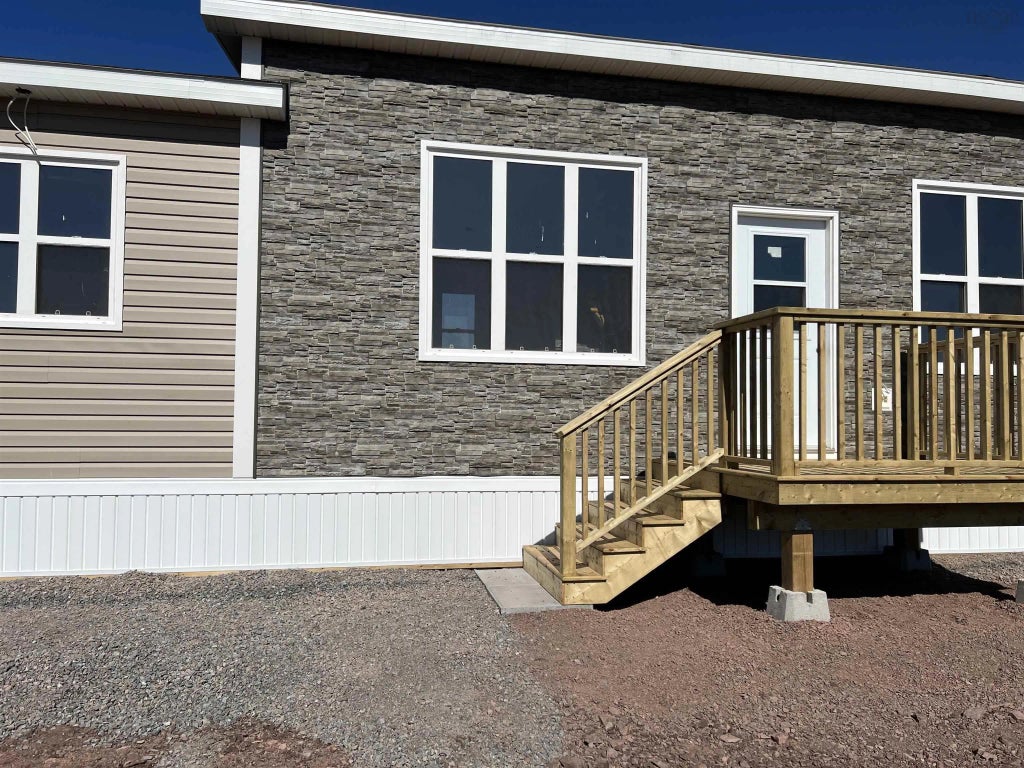 Are you looking to downsize or purchasing your first home than you should check out what this seller has to offer. 8 Minutes outside of Antigonish on popular Highway 7 in Ashdale overlooking the rolling hills of country living but a short 11 km drive to Town. Newly built mini home style detached home 16x74, sits on helical piers on its own 2.69acre lot with drilled well and septic system. The layout is very suitable with kitchen, dining, living area open concept in the center of home, one bedroom with bath and laundry area on one side and master bedroom, walk in closet, ensuite bath with walk in shower and separate bedroom to to the other side of the living area. kitchen has island with sink and room for dishwasher. front and back deck are included. front and back yard will be grass seeded to sellers expense.