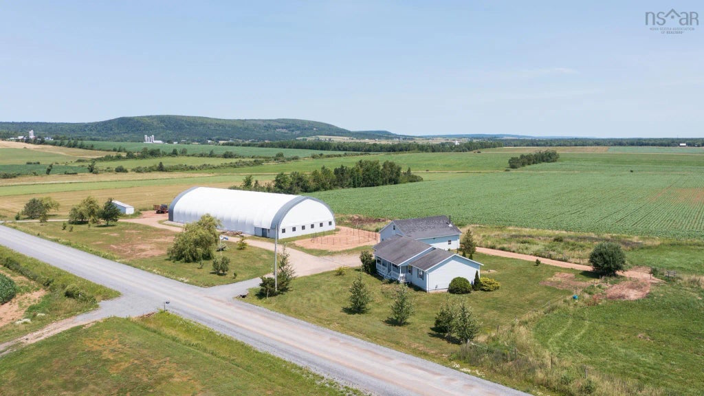 Make your dreams come true this winter, start riding/training in this Mega Dome built in 2004, 60' x 160' plus 7 box stalls, 4 straight stalls along with an inviting neighborhood trail for trail riding, walking your dog, biking, or ATV. When you are finished, relax in this renovated ranch bungalow with 2 master bedrooms complete with their own master bathrooms. This 2600 sq ft of the livable home offers an open, and split bedroom floorplan, perfect for everyday living and entertaining. The main floor features include a combined great living room/kitchen/dining room area large enough for a harvest country table, plus a new 2pc bathroom with laundry area. The newly renovated main-floor primary bedroom has a luxury bathroom with a double sink vanity, separate shower, and a jetted soaking tub, perfect after hours in the saddle. The lower level flex guest space includes a bedroom and full bath, with an attached family room with a small kitchenette if you wish. Enjoy evenings sunset on the covered front porch with views of the farm fields and entertain friends. The 7-stalls + 4 standing stalls barn has a tack/feed room/warming room with a viewing window to the arena, wash rack, and an attached loft that houses up to 3000 small square bales. This country home /horse facility is located in the heart of Annapolis County, situated on 18 useable acres and only 2 hours from Halifax. Bonus additional 30x40 (1 1/2 ) story insulted detached garage with a loft for the man of the family. Heating is an oil furnace with hot water baseboard, plus oil-fired hot water on demand, oil metal tank 2017 double bottom, 200 AMP service, Generator panel, air exchanger, drilled well, and C2 septic system, Barn has water and 100 AMP service along with the garage. NOTE: this property has not had horses for several years, the owner has basically used the barn /arena/garage for storing stuff. The house and garage will need a new roof, plus Mega Dome no warranty reflects in the listing price.
