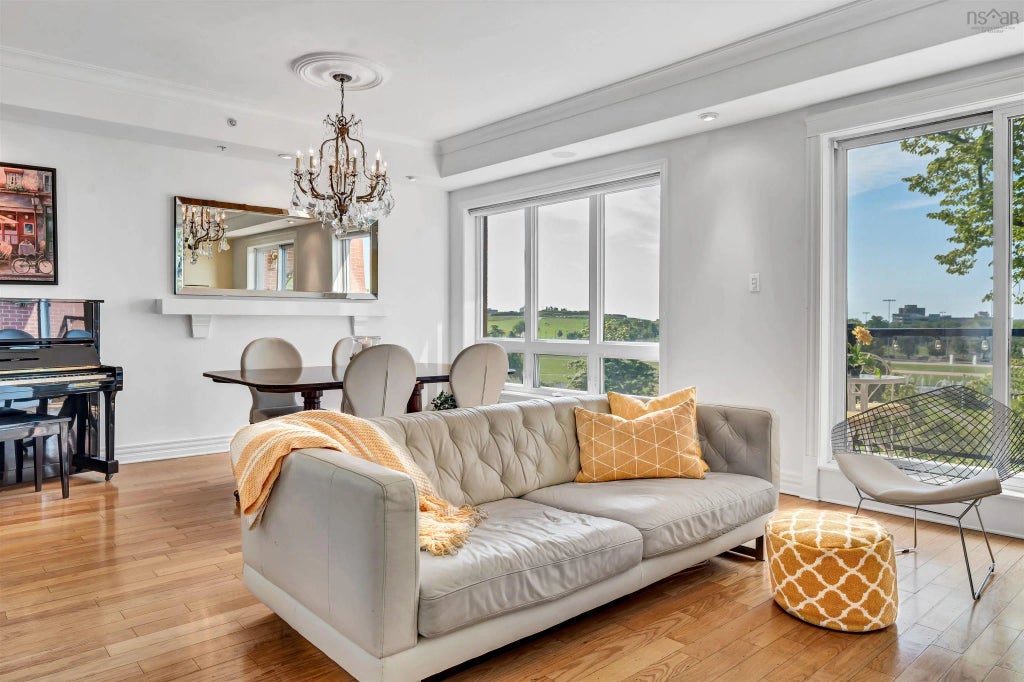 Spectacular 3-bedroom, corner unit condo overlooking the luscious Halifax Commons and Citadel Hill! Bask in the natural sunlight that radiates through the large south-east facing windows. This spacious layout will be appreciated should you have young children and are working from home. Sit comfortably at the walk-around kitchen island or at a full-size dining table. This condo features 9’ ceilings, ambient indirect lighting, a Napoleon ambient fireplace, granite countertops and blackout blinds in the bedrooms- all in this pet friendly building! Enjoy your favorite music through the built-in speakers in the main living area and primary bedroom. There is an abundance of storage throughout including a large primary walk-in closet and walk-in storage. Enjoy morning coffee on your private balcony with a front row view of the fountain and the Emera Oval - where many enjoy sports, running, ice skating or walking their dog. Located minutes from shops, cafes, the QEII Hospital and DAL Campus. BIGGEST BONUS- a MILLION DOLLAR VIEW that cannot be beat!