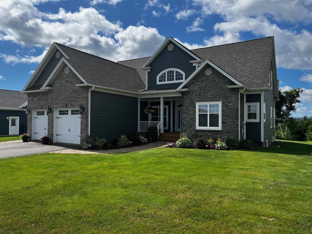 Custom Built, executive home in popular subdivision in Mount Cameron. Overlooking Antigonish Landing, this stunning 4 BR/3.5 Bath home is an ideal family home. Quality built in 2012 with ICF foundation, engineered floor truss system, Canexcel wood fibre siding and composite decking with a glass railing system and stone paver walk ways to front & side door as well as back yard path. Front entrance opens into great room and custom stairway to upper floor with 22’ cathedral ceiling and 18’ high windows overlooking Antigonish landing. The 2-sided wood fireplace is shared with the dining/kitchen/hearth room – perfect for entertaining! The Custom kitchen has granite countertops, cabinets to ceiling, under cabinet lighting and island with raised breakfast bar. Main floor is completed by laundry room, large primary bedroom with south facing views, ensuite with custom made vanities, large corner jetted tub, ceramic shower, heated floors, and large walk-in closet. Upper floor has catwalk joining two 11 X 18 bedrooms with walk in closets on one side with an office and full bath on the other. The basement has finished family room, bedroom, gym room, full 3-piece bath, large storage room with work bench and built in cabinets and separate mechanical room with 5 Ton ducted heat pump, 60 Gal hot water tank, hvac air exchanger and central vac. Extra wide two car garage with stairs to basement. 17’ X 12’ Stone Paver Patio facing the landing for evening entertaining or morning coffee. Only minutes to the hospital or amenities in downtown. What more can you ask for!