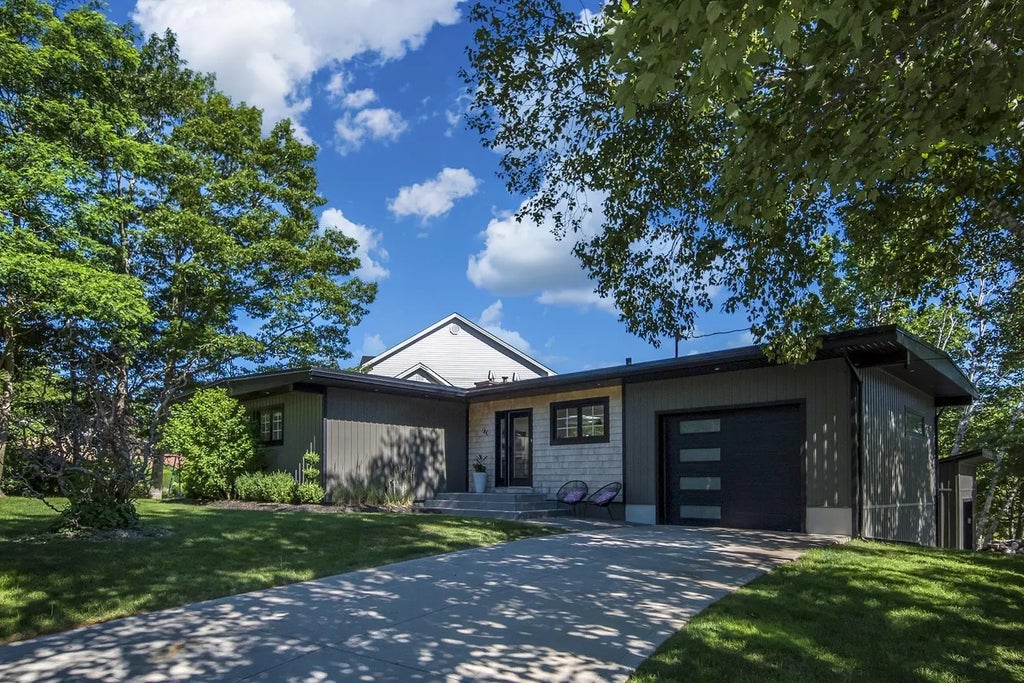 This house has the Wow Factor! A beautiful bungalow remodelled for open concept living with a modern aesthetic. Move in and enjoy! Located in the heart of Sherwood Heights, this home sits on a 10,000 sqft manicured corner lot with great curb appeal. You'll be the envy of all of your neighbours. The living room has an abundance of natural light from the large windows and skylights, great to work from home. During those long winter months, the wood stove offers a warm, intimate feel. The kitchen features quartz counter tops, stainless steel appliances, all white backsplash and cabinets with a large accented centre island. The space flows into the dining room and patio doors which lead to your large back deck (9x27.6) with privacy walls. The perfect space for entertaining. Upstairs is where you'll find the primary bedroom with walk-in closet and heat pump and two additional bedrooms. The custom bathroom is fully tiled with a freestanding tub, walk in shower and double vanity sink. This is what bathrooms dreams are made of. On the lower level is where you'll go to relax (or send the kids). The rec room has a built in bar, another fire place with stone hearth and a second heat pump. You'll also find a full bath, den, large storage room, the laundry and a walkout to your back patio with a hot tub. We cant forget this house has a built in garage plus a detached garage. This home really does check all the boxes! Book your private viewing today.