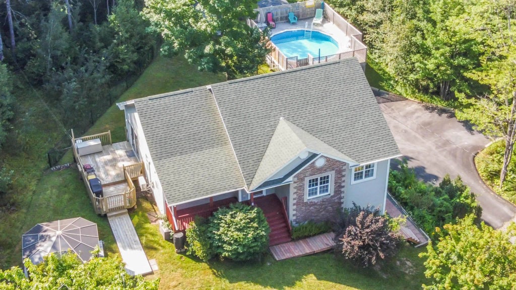 Motivated sellers! Welcome to this beautiful, well-maintained home just 30 minutes from the city. Enter your own country oasis on just under two acres with this 3 bedroom, 2 bath home. The main floor has a spacious kitchen with ample cabinets, leading into the dining and living areas. Walk out from the dining area onto your deck. From there, you can enjoy the fenced yard, or head to your above-ground pool with its own fenced deck. The recent hurricane took a large willow tree in the front and a gazebo but the pad for this is in place and ready for something new. A propane fireplace in the living room will keep you warm in the winter, and the year-old heat pump will make sure summer days are cool. The hardwood floors in the living area extend down the hall to the three bedrooms, including a primary bedroom with ensuite. This level also has a 4 piece main bath with additional main floor laundry. Downstairs, you'll find a cozy family room (with heat pump) and a generous den/office space. There is also a large garage that walks out to the yard. Oil tank 2019, Upper heat pump 2021. This home is move-in ready for a new family.