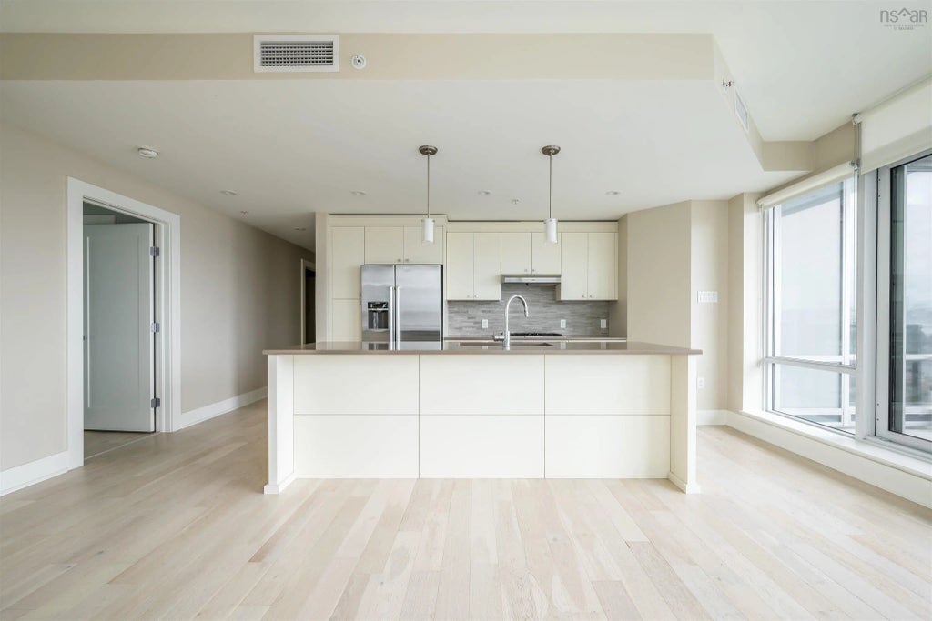 Welcome to the Aqua Vista at King's Wharf! This 2 bedroom + den offers spectacular views of the city and harbour, quality finishes, natural gas stove, fireplace, balcony, and more! Just a short distance from Downtown Dartmouth with shops, restaurants, bars, Alderney Landing Ferry, and a short drive from Dartmouth General. The building includes an outdoor pool, jacuzzi, gym, and lounge are with full kitchen facilities. Be a part of King's Wharf bright future, today!