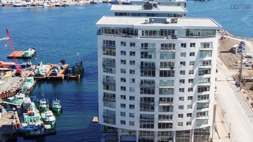 Welcome to The Anchorage @ Kings Wharf Suite 1006 ~ 15 Kings Wharf Place, Dartmouth Halifax Waterfront Development Enjoy air conditioned comfort as you take in the stunning water and cityscapes from this 10th floor corner condo with floor to ceiling windows and expansive balcony. You'll love the ever changing scenery on Halifax Harbour and the twinkling lights of the MacDonald Bridge and Halifax in the evenings. Sailing boats, ferry, and cargo ships pass by daily and you will know why you chose The Anchorage at Kings Wharf to call 'home'. This spacious 2 bedroom, 2 bathroom condo with generous great room allows for a variety of furniture placement, featuring granite counters, Grohe faucets, Bosh stainless kitchen package, carpet free, immaculately maintained throughout, heat pump and in-suite laundry & storage. This condo comes with parking, storage and building amenities that feature car wash bay, fitness centre, roof top social room, outdoor common terrace, resident Super, and on-site cafe and restaurant. Located in developing Kings Wharf you'll love the neighbourhood for its cafes, shops, professional services, ferry & transit, local farmers market, library, theatre, and yes lots of great walking & biking trails with lakes and ponds nearby. Quick commute to Halifax, Burnside and Dartmouth Crossing are just an added bonus. Viewings by private appointment only ~ call to view today. Don't be caught saying "I should have bought it when I saw it!"