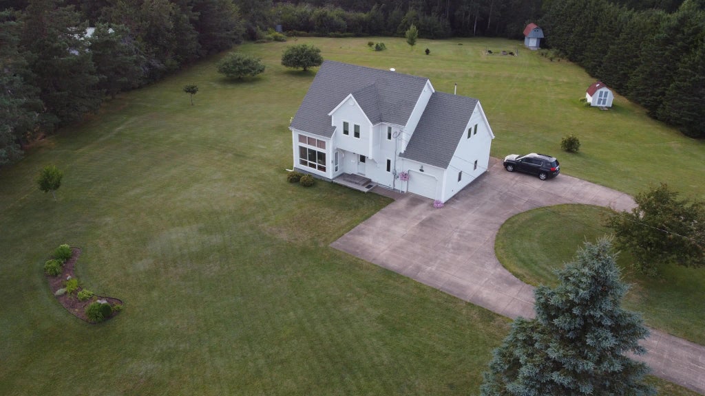 Welcome to this executive, four bedroom home, located in a rural setting with an attached, finished garage, concrete drive and landscaped lot! This attractive, custom build provides hardwood, cork and bamboo flooring throughout the 1st and 2nd floors, granite counters with the kitchen upgrade, open dining/living rooms, main floor laundry & half bath. The split landing to the second floor leads to the 4 bedrooms, spacious 4 pc bath, den/office space. With finished space on the lower level, including a kitchenette, cold room, rec room, storage and work shop, this home has many features to offer. The 15x18' composite deck off of the kitchen includes a screened room for outdoor grilling and gatherings. From there, the landscaped yard provides apple and cherry trees, grapes, high bush blueberries, raised gardens, manicured lawns and garden sheds. This south facing home was built in 1990, with efficiency in mind and current operating costs of $2300 / yr. Foundation walls are 12" in thickness and the main walls of this home are 9". Close to town amenities and area schools, this impressive home can be viewed virtually or in person.