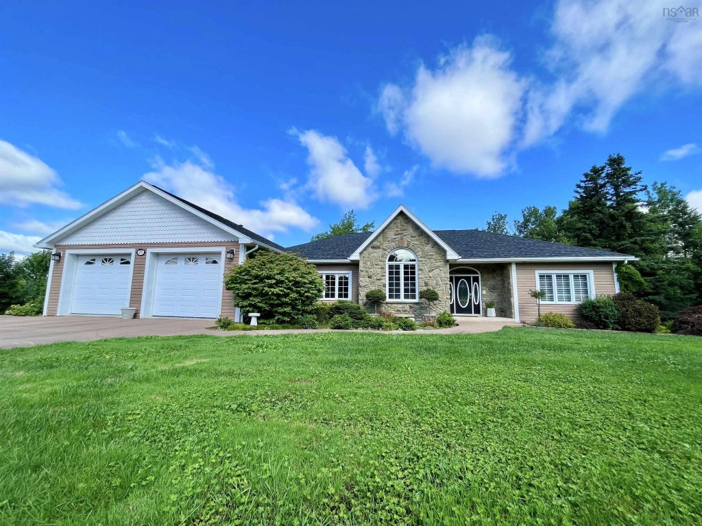 FULFILL YOUR DREAM of owning a quality built, spacious, and feature-rich mini estate in a prime location. 1.9 private acres of beautifully landscaped property overlooks the historic East River valley town of New Glasgow. Large, custom-built bungalow with primary bedroom and bath and laundry all on the main level. App. nine-foot ceilings on the main floor, a full walk-out-on-grade, finished lower level that includes three extra bedrooms. Elevated sundeck plus sheltered patio. Built to R-2000 standards with ICF style foundation. Two-car and one-car-plus garages. Upgrades in past six years include roof shingles, two heat pump heads, several main floor window panes, Granite counter tops and new blinds in kitchen, several appliances, primary ensuite renovation, VenMar air exchanger, fibreglass oil tank and water pressure pump. Sandy beach, golf courses, parks, marina, shopping, restaurants, a hospital, and even a small airport are all within a fifteen-minute drive. The newer P to eight school is just a short walk away. This is a very special property.