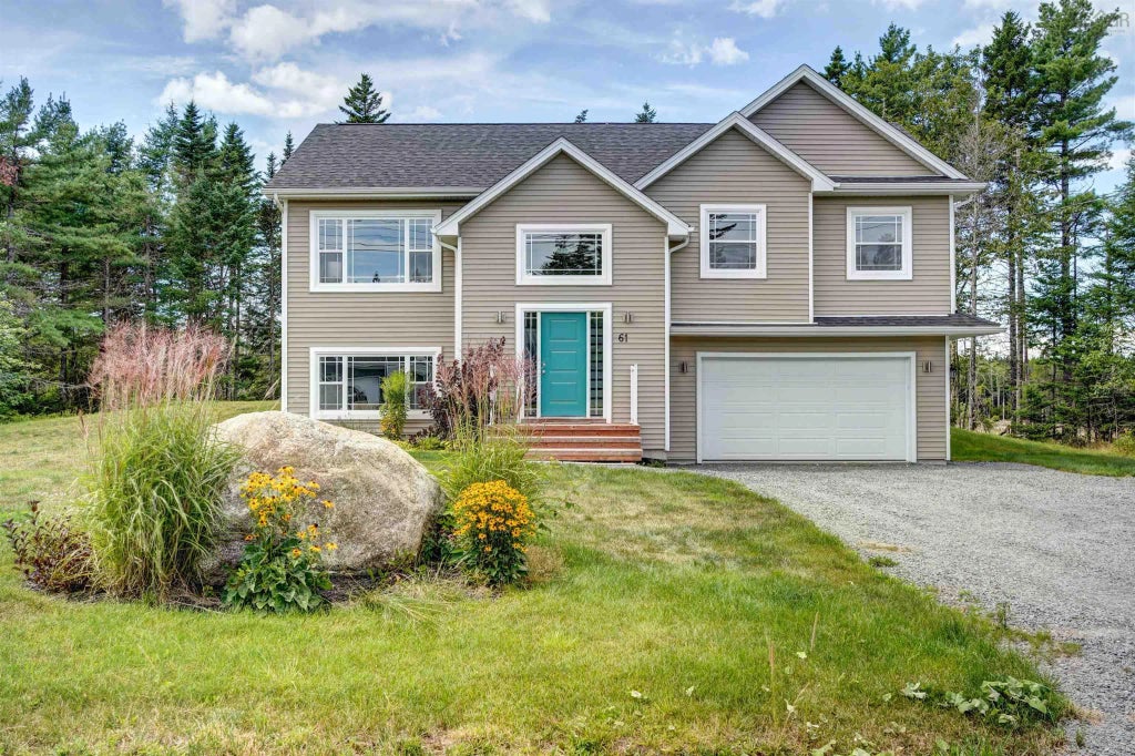 Welcome to 61 Bonsai Drive, a Marchand Homes build, located in Hammonds Plains on 1.23 acres of land! This executive split entry main level offers open concept living in the dining, kitchen and living room with one ductless mini split with heat and air conditioning. The kitchen has cabinets to the ceiling, quartz countertops backsplash, and all appliances included. Down the hall you will find the primary bedroom with a walk-in closet and an ensuite with double vanity sinks, a tub enclosure and linen closet. You’ll also find two additional bedrooms and the main full bathroom upstairs. The hardwood stairs take you to the lower level where you’ll find the rec room, a third full bathroom, the laundry room, a den/office room, and access to the double car heated garage. The back deck has stairs down to the landscaped yard. Contact for more information!