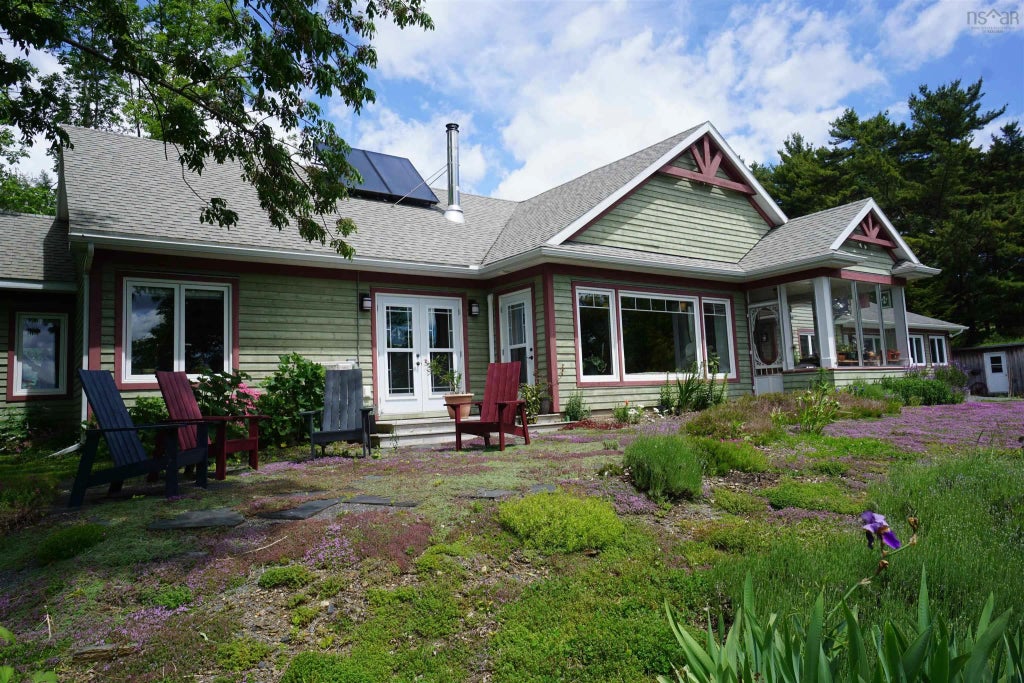 MIDDLE LAHAVE OASIS. Elevated sunset views over the Lahave River. Over 5 acres of serene privacy and nature, a 10 year new ICF 3 bedroom, 1 1/2 bath 1,700 sq. ft home on slab, plus an 890 sq. ft. separate, matching four season guest house. Beautiful gardens, total privacy, pond, two garden sheds, and centrally located between Bridgewater and Lunenburg. Main house features one level living, energy efficient construction, views of the river without compromising privacy, attached solarium/greenhouse, open concept principal rooms, and engineered hardwood floors. The guest house is ideal for rental income or to be used as an in-law home. A nature lover’s paradise.