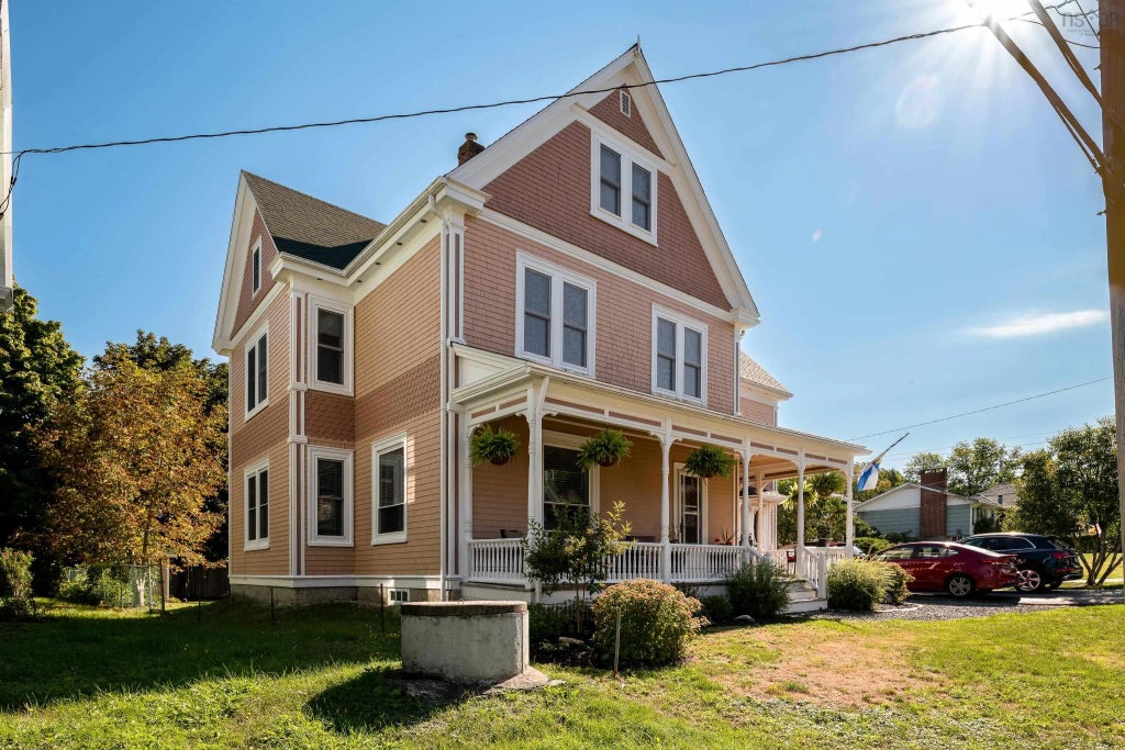 Welcome to 23 Pleasant St, a 3 Level unique home set in the heart of Mahone bay. Just a short walk from all the town has to offer, be it the quaint shops, cafes and restaurants or the beautiful waterfront and incredible local architecture. This home fits in perfectly, and with over 3,000 sq ft of living space is the ideal home for any family. Park in the double driveway and enter via the covered verandah. Imagine yourself here enjoying your morning coffee or evening cocktails come rain or shine. The Foyer is grand and leads through to a Sitting Rm (currently used as the office the home is approved to be a store front) and Living Rm divided by the original pocket doors. The Dining Rm is large and located adjacent to the large kitchen with its abundance of cabinets and counter space, further enhanced by its center island and Pantry. The main level is completed by a 2 Piece Bath and Sunroom. The character of the original baseboards, doors and trim should not be overlooked, much alike the ceiling height and the curved wall finishes, a quality that is lacking in new construction today. The second level is accessed via both a main and secondary set of stairs. The Primary Bedroom is large, as are the additional 2 bedrooms, and the landing is sufficiently sized for a small office or reading area. There are 2 bathrooms on this level, one features a claw foot tub and the other houses the home's Laundry, there is even a private balcony at the rear of the property. The 3rd level offers a multitude of uses and is currently used as a craft workshop.. The Basement is dry, perfect for storage and is home to a workbench and the home's utilities. The property enjoys the benefit of improved insulation and a newer ductless heat pump which affords the home efficient heat and cooling year around. The large level Lot provides an ample play area for kids or the perfect canvas for any gardener and the 2 sheds provide storage for toys and gardening equipment alike.