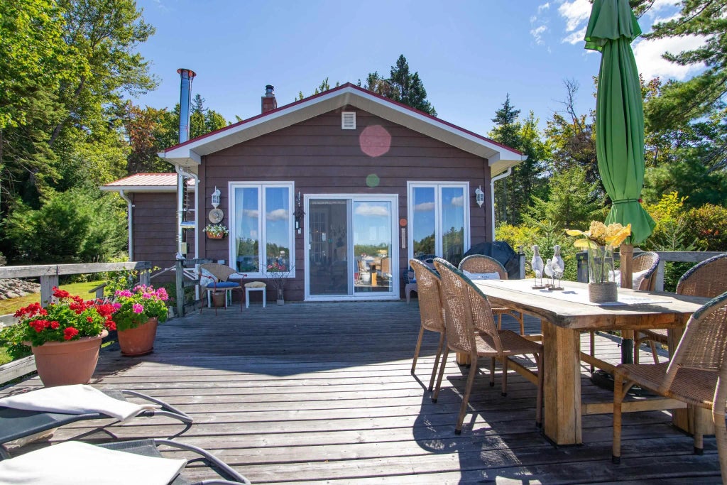 Private, picturesque oasis on a pristine lake! Just 15 minutes outside historic Annapolis Royal, this timeless year round cottage is meticulously built, blending quality, style, convenience, comfort and character. Nicely landscaped, paved walkways, gardens, shrubs, with several outdoor focal points to relax - firepit, brick fireplace, hammock, BBQ spot, dock, lakefront deck off an amazing sunroom. Main floor features a galley kitchen flowing into the inviting bright dining/living area with woodstove, heat pump, large deep set windows, Parkay oak tiles, cathedral ceilings, Primary bedroom with ensuite, laundry, 2nd bath. Main foyer leads to a breathtaking family sunroom, hardwood floors, pine ceiling with skylights, surrounding windows bringing nature indoors to create the perfect ambiance for entertaining, enjoying cozy evenings around the glass enclosed woodstove. Or, relax outdoors on the spacious deck amidst a postcard setting overlooking the lake. Eye-catching staircase accesses two bedrooms on the 2nd floor. Quality and style reflected in the attractive, fully furnished guest house (30x14) with a deck and woodstove. Detached garage, w/concrete floor (27x13). Metal storage unit(18x7) Logic shelter, w/wood floor (24x10). Drilled well.