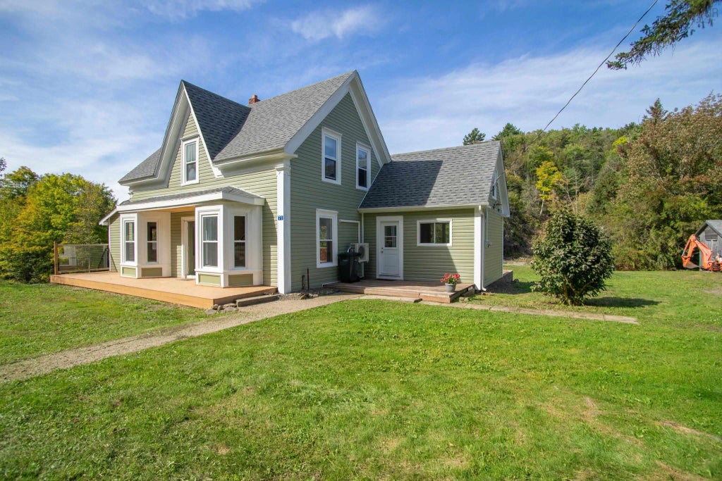 Older style three bedroom home nestled in a quiet country setting with 349+/- feet on the Moose River, has been updated, remodeled and totally refreshed for today's homeowner. (2022) New windows, doors, roof, siding some new flooring all reflect the new look. The old wrap around covered deck has been transformed to expose the old Victorian style bay windows on opposite sides of the main front door. The side facing the river has been partially converted to a den, above which is the covered deck access from the Primary bedroom and ensuite on the second floor, where you can enjoy the warm morning sunshine and the sounds of nature as you greet your new day. Two other bedrooms on this floor. The side entrance on the main floor opens to an inviting, bright kitchen where three large windows sit over the counter area allowing natural light to filter inside, lots of nicely finished wood cabinets provide ample storage, a built-in pantry behind full length glass paneled doors add a nice touch. Spacious kitchen for family meals. Wide glass paneled doors open to adjacent family room, full bath and den on main floor. Outdoor entrance to basement. Detached (12x16) shed. Close to towns of Digby and Annapolis Royal. New septic system installed 2023.