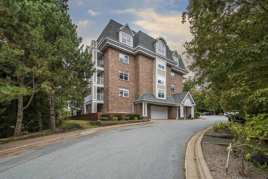 Welcome to Unit 303 in beautiful Brookshire Mews which has many updates! The location of this 2 bedroom 2 bathroom 1060 sq. ft. condo is ideal as you are a short distance to major amenities, the highway, parks & recreation, and in one of the most sought-after school districts in HRM! As you enter, the huge main foyer leads to the dining area an stunning kitchen. This modern space features updated quartz countertops, a coffee bar, and upscale stainless steel appliances. The spacious living room leads to the a balcony surrounded by nature which is the perfect place to unwind.. The well sized primary bedroom has its own renovated ensuite with a custom walk-in shower and sizable double closets. An additional bedroom, renovated main bathroom, laundry, and in-unit storage completes this space. The well run condo corporation features low condo fees which include infloor radiant heat, water, building maintenance, assigned parking and a 6x5 climate controlled storage unit in the building. As you can see, this place has been meticulously cared for and is ready for new owners to call it ‘home’. A terrific find for $369,900!