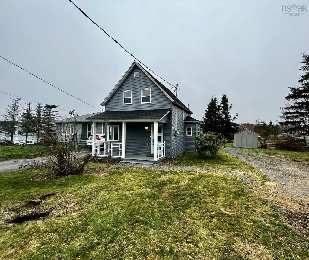 Here is your new home, located in the beautiful community of Glace Bay! This home is close to all amenities and is only a 15 minute drive to the Cape breton university. Pull into the drive and stroll around the extensive grounds with over 1/2 and acre of land! Step up to the covered veranda and step inside. Be greeted by ceramic tile as it leads to the main floor bedroom bright with corner windows. The tour continues to the kitchen offering dark cherry cabinets , new counter top, ceramic backsplash and Commerical style sink. Under the glow of pot lighting the eating area is cozy and perfect. Slide open the rustic barn-style door to the large living room, boasting exposed decor beams and a patio door to the private patio area. A main floor laundry and storage room completed this level. Ascend the wood staircase to find two more bedrooms plus a renovated bath with ceramic tile surround and back lit vanity mirror. Extensively renovated with mostly new windows, vinyl siding, new roof shingles, new wiring and new plumbing. Call today to view!
