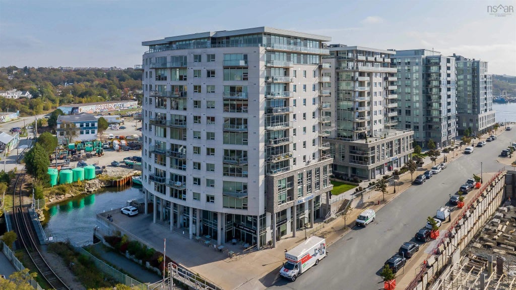 Welcome The Anchorage at Kings Wharf. Located in a coveted Downtown Dartmouth waterfront community and situated alongside the historic Shubenacadie Canal and Halifax Harbour. Enjoy urban condo living at its finest only minutes away from shopping, dining, cafes and walking trails. This 2 bedroom + Den corner unit condo offers a spacious floor plan with 9ft ceilings and private balcony with views of both Dartmouth Cove and the Canal. Open concept kitchen features granite countertops, Bosh stainless steel appliances and eat-in island overlooking the generous living area. This condo comes with parking, storage and building amenities that feature car wash bay, fitness centre, roof top social room, outdoor common terrace, resident Super, and on-site cafe and restaurant. Book your showing and start living your best life!!