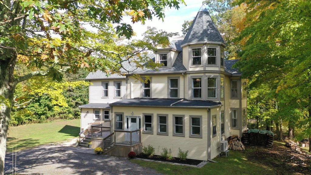 Welcome to this charming, Queen Anne style farmhouse in an idyllic country setting! The home boasts a large dining room, sitting room, and family room- ideal for entertaining. The main floor also features a stylish kitchen, full bathroom, mudroom, sunroom(playroom), and a grand hallway highlighting the gorgeous woodwork of the main staircase. The second floor offers 3 large, sunny bedrooms, 2 full bathrooms, and laundry. The third floor has untapped potential that could be renovated into additional living space. Recent renovations to this home include: an efficient wood/propane furnace, house rewired, 200 amp entrance with generator hookup, new roof (house & barn), gutter/drainage system, ductless heat pump, and UV water filter. Complete list of improvements available upon request.