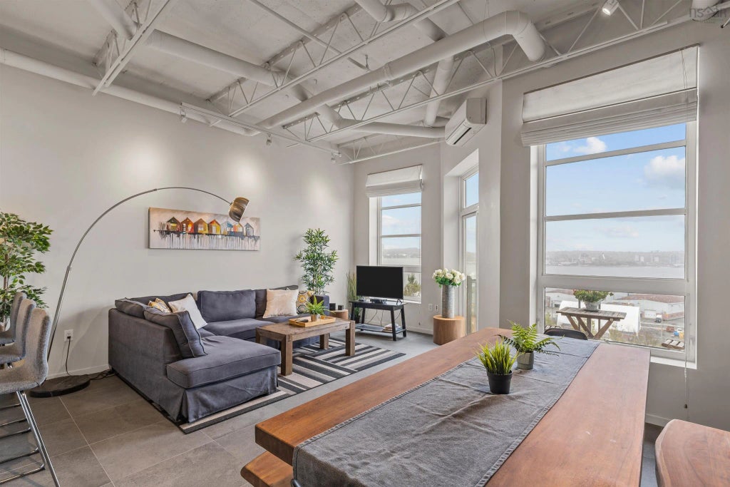 This spectacular top-floor unit is in one of the best-managed condo buildings in Halifax. Spice Condos was built by one of Halifax’s leading condo builders: Polycorp. The design and management of the building have kept the condo fees very low while maintaining a healthy reserve fund. The ICF construction also keeps power costs low, making for very happy owners. This unit has been completely renovated with modern finishes throughout, and the view of the Halifax harbor from the balcony is unparalleled. The unit features 15-foot ceilings, one large bedroom, an open-concept living and dining room, spacious kitchen, and a four-piece bathroom. There is one underground heated parking space with attached storage. The building features a well-appointed gym and a live-in superintendent. Top-floor units with this view are rare to come to market. With the redevelopment of the Cogswell interchange, this unit is a great long-term investment. Book your viewing today.