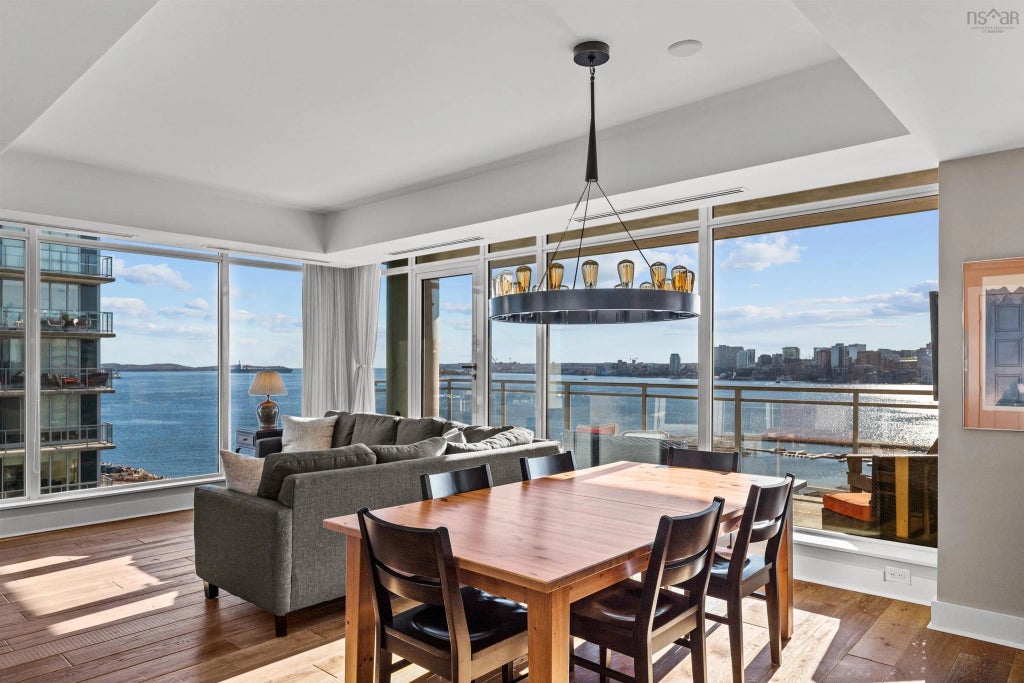 Absolutely stunning 9th-floor unit located in The Keelson at Kings Wharf. You will be wowed by the fantastic views of the Halifax Harbour and the attention to detail in this spacious unit. With over 1400 square feet of living space, this condo has everything you need. You are greeted by a spacious foyer and the office/den when you enter the condo. The corridor leads to the open-concept kitchen, living and dining areas. Hard surface countertops are featured throughout the condo, and upgraded Bosch appliances. The spacious primary bedroom has a walk-in closet and a four-piece spa-like ensuite bathroom. The second bedroom has great views of the harbour and a walk-in closet. The three-piece second bathroom completes this very functional floor plan. The Keelson is one the most desirable condo buildings in Dartmouth. It features central air, gym and social room. The condo comes with one heated underground parking space with storage. The Kings Wharf development is moving right along with great shops, restaurants and cafes that will surround you. Book your viewing today.
