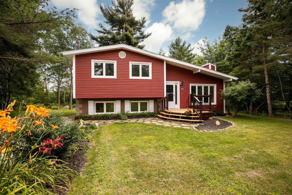 Welcome to 26 Regwood Drive, located in a sought-after area of Windsor Junction. This side split is nestled on a large lot (40060 sq ft). Well cared for, with new carpet in bedrooms, new lower level flooring, roof shingles in 2018, ductless heat pumps, painted throughout and recently groomed grounds. Featuring open concept living room with skylights, white kitchen and dining room with walk out to the huge deck backing onto the lake. Primary bedroom, 4 pc bathroom and 2 good sized bedrooms complete the second level. The lower level you’ll find a massive rec room, den/office and sweet powder room including combo laundry. Residences on Regwood Drive also have a membership to the Windsor Junction association and all its perks. Minutes to Sackville & Bedford and a short drive to Dartmouth & Halifax. Book your showing and see this beautiful home yourself!