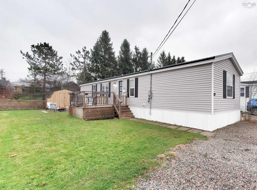 This sweet three bedroom, one bath mini home is updated and has been well maintained. If you are looking for a great location this is it, only minutes walk to the Truro Dalhousie campus, playground park, Tim Hortons, NSLC, pharmacy, and grocery store. A new metal roof was done in 2020, the shed was refinished, outside there is even a fire pit area to spend summer evenings! All appliances are included and there is absolutely nothing to do except move in! Lot rent $180.00 per month.