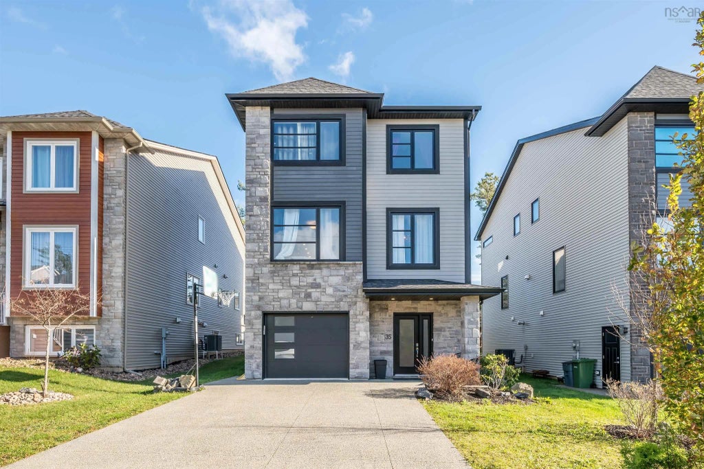 Welcome to 35 Evandale Lane in the Parks of Bedford West! This stunning design of the modern contemporary home is truly beautiful both inside and out. The property has outstanding finishes with an eye for detailed craftsmanship. The layout combines an open design on the main floor which includes a bright family room with fireplace which leads to a full width deck. The stunning custom kitchen with soft door closures, pantry, centre island and granite is just off the separate dining area. The upper floor has spacious bedrooms, laundry, a full bath and the primary bedroom has a private ensuite and walk in closet. The lower level is also above grade and features a rec room, a full bath and a fourth bedroom.