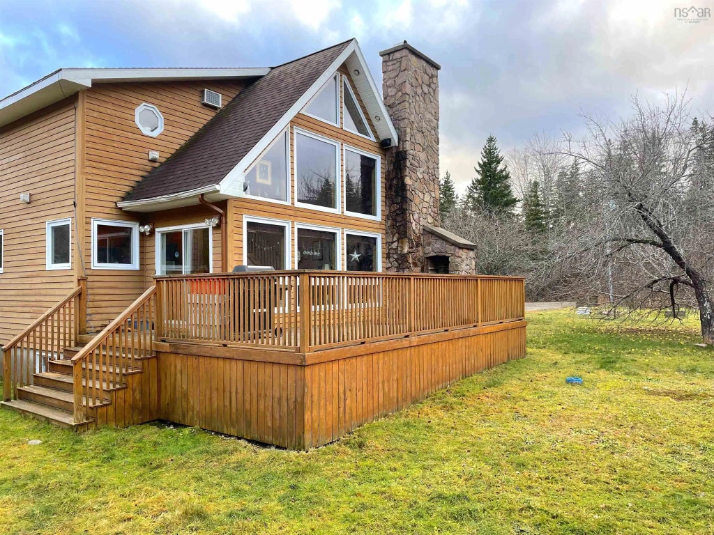 CHALET STYLE 1.5 story home located on 4+ACRES of private rural property. This 2 bedroom, 2 (full) bath home sits 1.5km off of the Cabot Trail on a gravel, maintained road. The main floor family area features an open kitchen-designed-for-efficiency, dining & living room. This space features Cathedral ceilings, FLOOR to CEILING WINDOWS, Breakfast Counter, OVERHEAD fan, CUSTOM BUILT fireplace/chimney (built-in outdoor bbq/smoker/pizza oven) + PATIO doors to a large BACKYARD & DECK. The main floor completes with a large bedroom, full bath, entry area & storage closets. Deck constructed to support full size hot tub (no tub) You'll wake every morning in the LOFT/PRIMARY BEDROOM to the beautiful seasonal mountain views. Loft overlooks living room & features ENSUITE bath + laundry & even more storage. The fully developed lower level features an L-shaped family room, office area, furnace room, craft room and a basement walkout. This is the perfect property if you are looking for peace, privacy & solitude. All of this beside a babbling brook and only a short distance off the beaten path! Set up a viewing today and see for yourself the lifestyle you could live on South Branch Road.