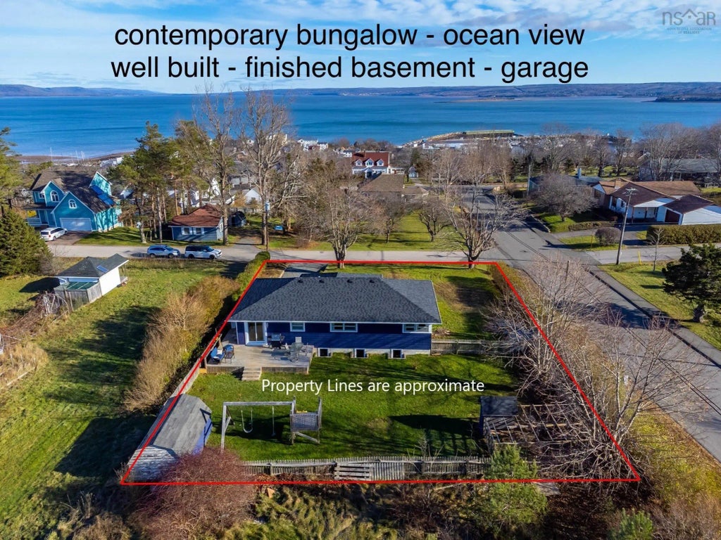 Spacious contemporary 2 level bungalow with ocean view on 1/3 acre corner lot in a quiet residential area within the famous town of Digby. Well built with many recent upgrades, this charming open-concept home boasts a bright kitchen with adjacent formal dining room, generous sized living room, primary bedroom with ensuite & walk-in closet, second bedroom, 4 piece bathroom, laundry room, 3rd bedroom, (currently used as a reading room), and lots of closets, complete the main level. The fully developed lower level, with easy potential for an inlaw or rental suite, offers a large rec room, 2 additional bedrooms, family TV room, cold storage & utility rooms, plus interior access to attached garage. Recent upgrades (full list available) include new 4-zone boiler heating system, new roof, new water heater, newer rear and front decks, insulation, newer appliances and freshly painted exterior. The large lot has a fenced backyard suitable for pets, gardens and entertaining. Only a short stroll to all town amenities including school, shops, restaurants, wharf and hospital, plus conveniently close to ferry service to New Brunswick. This property is the complete package. Book your viewing today!