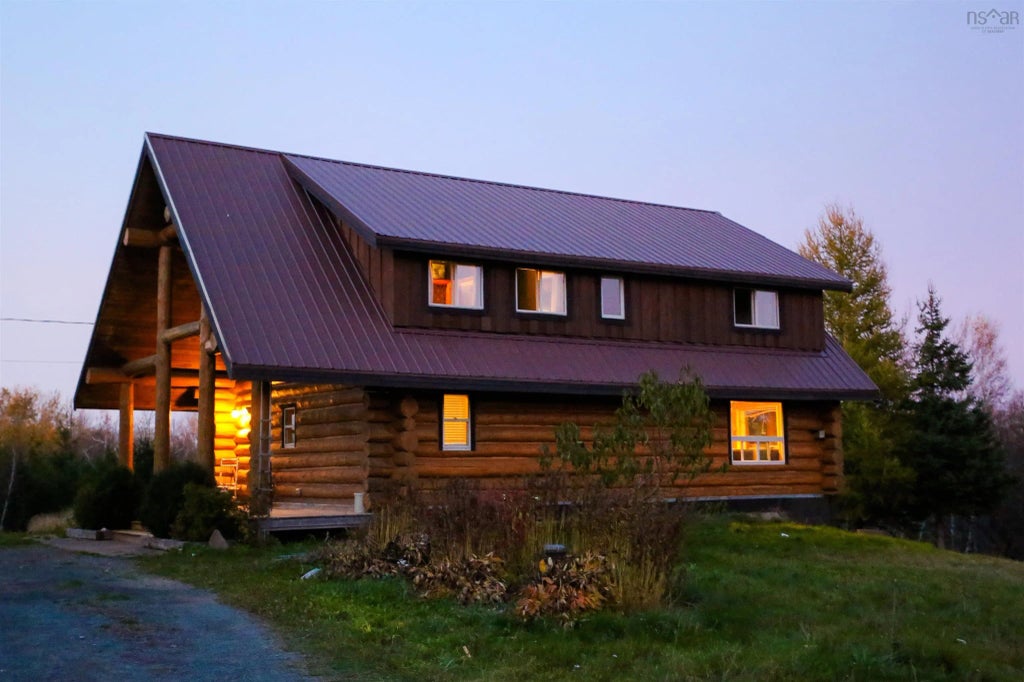 welcome to this amazing custom built log home sitting on 8.4 acres. Dreaming of your own river front property? The river is great for salmon fishing in the fall and local and sea run trout. On the riverbank is a small camp to sit and enjoy the scenery. There are 2 large ponds to stock and fish steps away from your doorstep. The pavilion is accented with stone and is waiting for memories to be made! Imagine the gatherings in this space on your private acreage. The beauty of this unique property is carried on inside with a large foyer open to the staircase leading to the bedrooms. Tucked to the right is the 4pc bath with tiled shower and exposed logs. This well thought out home offers a built in stack of drawers located across from the walk in panty. No lack of space here. The open concept living space has so many windows to enjoy the best nature has to offer. Kitchen with island and concrete counters and once you look up it is open to the upper level and those logs are just amazing! Upper level offers 2 large bedrooms plus a 7x8 room plumbed for the 3rd bath. The basement offers 2 walkouts to the yard. Kitchenette would also work for a great bar area. Laundry / 3pc bath family room plus 2 more bedrooms complete this level. Don't forget the workshop/ shed outside also with a chicken coop. Come have a look your will not be disappointed.
