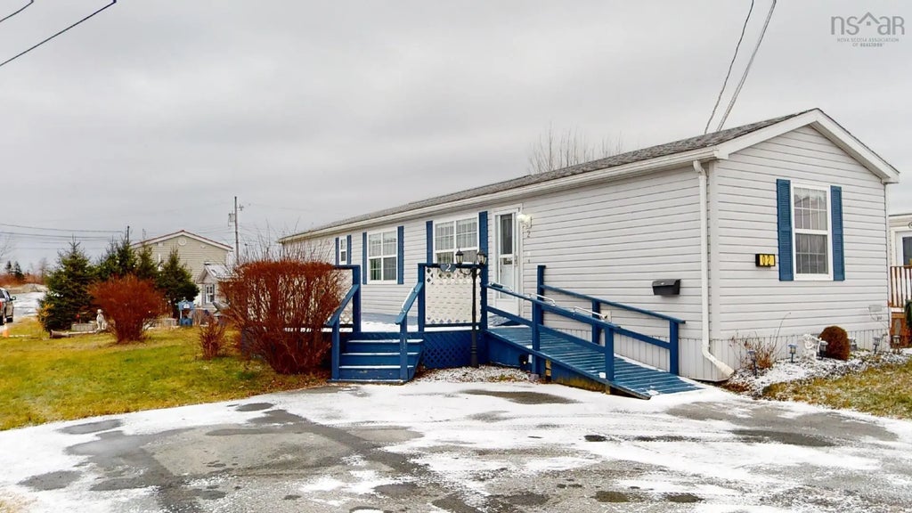 This mini home offers a fabulous layout with one large bedroom, laundry closet and spacious four-piece bathroom on one end and a second large bedroom at the other end separated by a huge eat in kitchen and a spacious living room with large windows which allow for an abundance of natural light. You will love the two ductless heat pump heads for energy efficient heating and cooling in both the living room and the primary bedroom. There is a large front deck that is perfect for entertaining family and friends. Its just a short drive to the shops and boardwalk found at Fisherman’s Cove, shopping in Cole Harbour, golfing at Harlen Point or visit one of the areas most popular beaches at the Rainbow Haven Beach Provincial Park. Access to the Shearwater Flyer Trail that leads to the Salt Marsh Trail is only stones throw away. This is the opportunity to live in the sought-after area of Eastern Passage that you have been looking for. The four stainless steel appliances and large shed are included in the asking price. Do not delay…book a private viewing of this fabulous mini home today.
