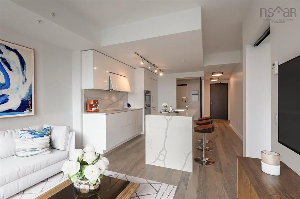Don't miss your opportunity to own one of the few remaining suites at The Roy. Only a handful of new quality suites are left on offer, and you could be the first to own this beautiful Suite with Gorgeous Harbour Views. Downtown's most elegant lifestyle awaits you at THE ROY, where international style lives and where you'll enjoy own spectacular views and evolving urban landscape. This contemporary 22-storey residence makes a bold, yet elegant architectural statement in such an extraordinary location at the epicentre of Halifax's downtown Heritage District. This iconic building will distinguish you as a sophisticated purchaser with the opportunity for unique ownership in a modern, ergonomically efficient suite with unique design elements and luxury finishes rarely seen before. THE ROY's generous indoor and outdoor amenity spaces span the 8th floor designed with a holistic approach geared to facilitate modern living and provide residents with exceptional, refined living. Whether at THE ROY's Lounge by the contemporary rooftop fireplace, swimming laps in the serene pool, or unwinding with a relaxing sauna or steam. Wellness suites and modern fitness facilities provide access to a healthy lifestyle, while the theatre and entertainment rooms can be reserved for your exclusive use. Think of the amenity spaces as your own private club. Live where you live and step out your door to the stunning Halifax Harbour walk and enjoy all the city has to offer with the best of restaurants, culture, shopping, and entertainment literally, at your doorstep. With two bedrooms and two full baths, THE ROY is the perfect place to take advantage of all that Halifax has to offer.