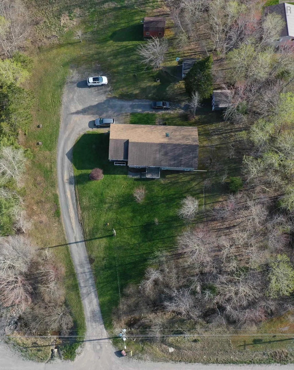 OFTEN SOUGHT SELDOM FOUND! TWO IN ONE! The best of both worlds! PRIME LOCATION with county taxes and town services! Almost a frisbees throw from the town line however tucked back off the road surrounded by trees giving you lots of privacy! This WELL CARED for home with two separate living spaces up and down could continue to act as an income property for you, or would be perfect to live in one and rent out the other to help with living expenses. OR it would be easy to change into a single family home. YOU HAVE CHOICES! Built by a reputable builder with a silent truss floor system, you can easily see that no quality detail was forgotten! Three zones hot water heating, central vac, sky light in bathroom... Includes appliances up and down. The carport was converted to a covered deck. Includes three sheds.....Just over an acre with a landscaped lot... B for Bargain C for sure! Do the two step- see and buy!