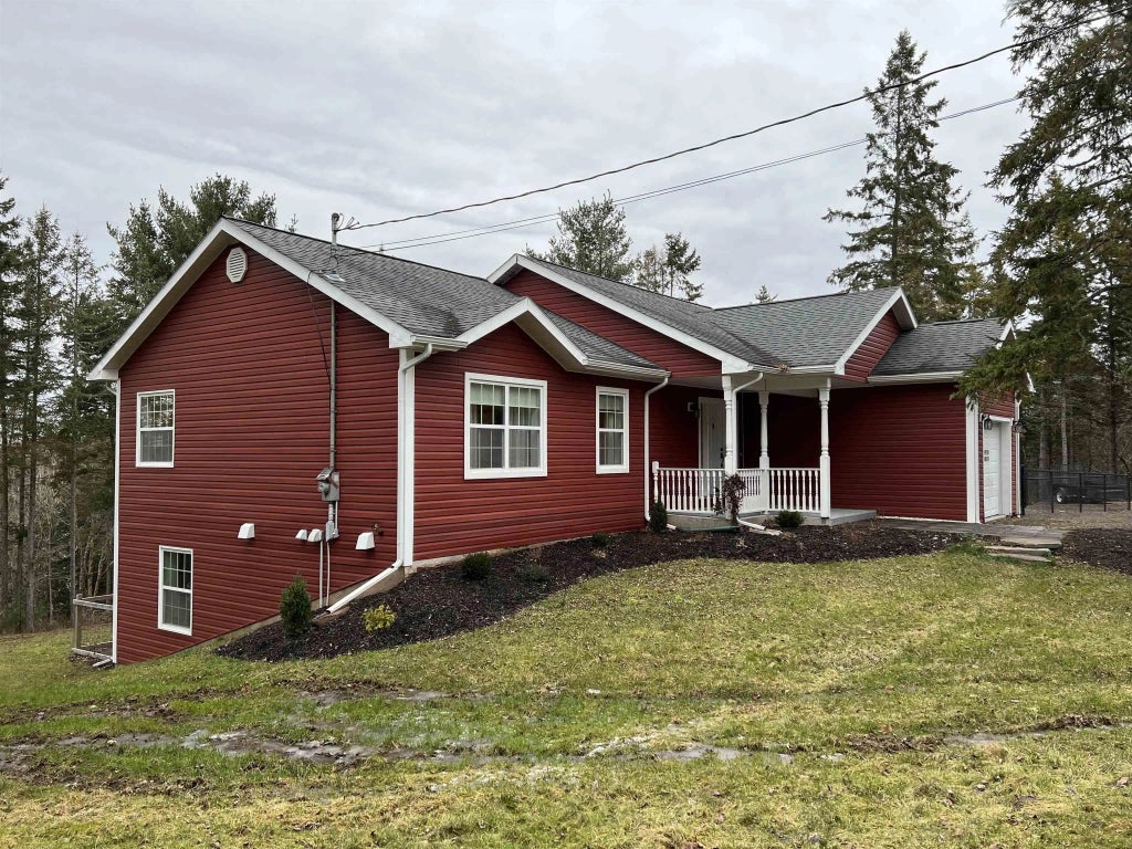 PICTURESQUE PROPERTY! Private treed acreage with lots of room to roam bordering an active BROOK on two sides! IMPRESSIVE, QUALITY CONSTRUCTION! This very UNIQUE bungalow features a fully finished WALK OUT basement with a superior insulated concrete foundation (ICF) This two bedrooms up and two bedrooms down unique floor plan has a full bath on both levels, a mudroom with attached garage and a shed. Absolutely stunning and functional kitchen with a massive island and top of the line appliances including a pizza oven! The stellar finishing touches include beautiful custom made decorative trim and medallions throughout which will be sure to WOW you along with gorgeous hardwood and ceramic flooring. Efficient ETS heaters giving time of day power discounts and newer heat pump for climate control. Relax on the covered front verandah or stroll through the 3.67 acres to the babbling brook! Enjoy country style privacy on your elevated deck, all of this without the long drive to town. Newer chain link fence is perfect if you have a fur baby! Call today for your private viewing! Too many features to list… Seeing is believing! Simply incredible.