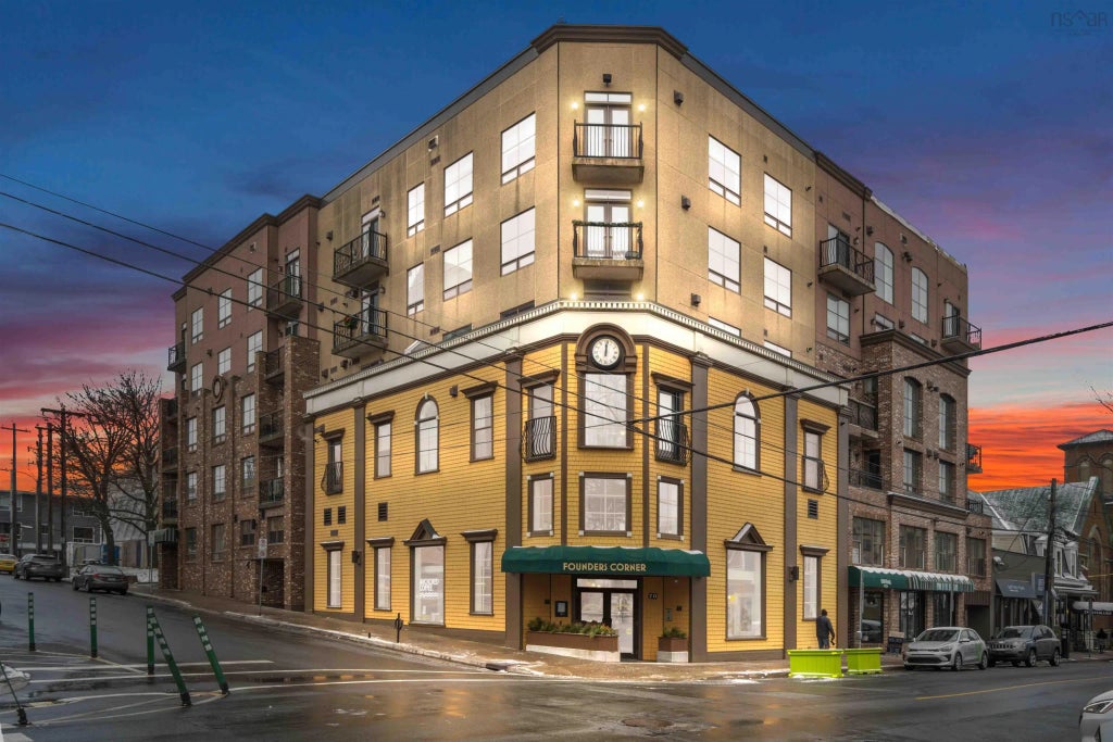 These executive condos rarely come up for sale! Founders Corner is the ONLY BOUTIQUE condo in Downtown Dartmouth! You’ve got to see this gorgeous condo with Water views of the harbour. The lifestyle that comes with living in a condo is one of luxury and convenience—you'll never have to pick up your keys before going out again! This 2-bedroom, 2-bath plus den home is perfect for downsizers or young professionals. With a spacious layout, recent kitchen/bath Reno, natural gas heat / fireplace/ stove, underground parking/storage, insuite laundry, polished concrete in floor radiant heat, elevator, balcony, supreme security, pet friendly and live in super; the best amenities for downtown living, this would be the ideal place for anyone looking to make their home in the heart of Dartmouth. And if that's not enough, there's even more space outside! The rooftop patio and solarium boasts stunning views of the waterfront and provides plenty of room for entertaining or relaxing outdoors with friends and family.
