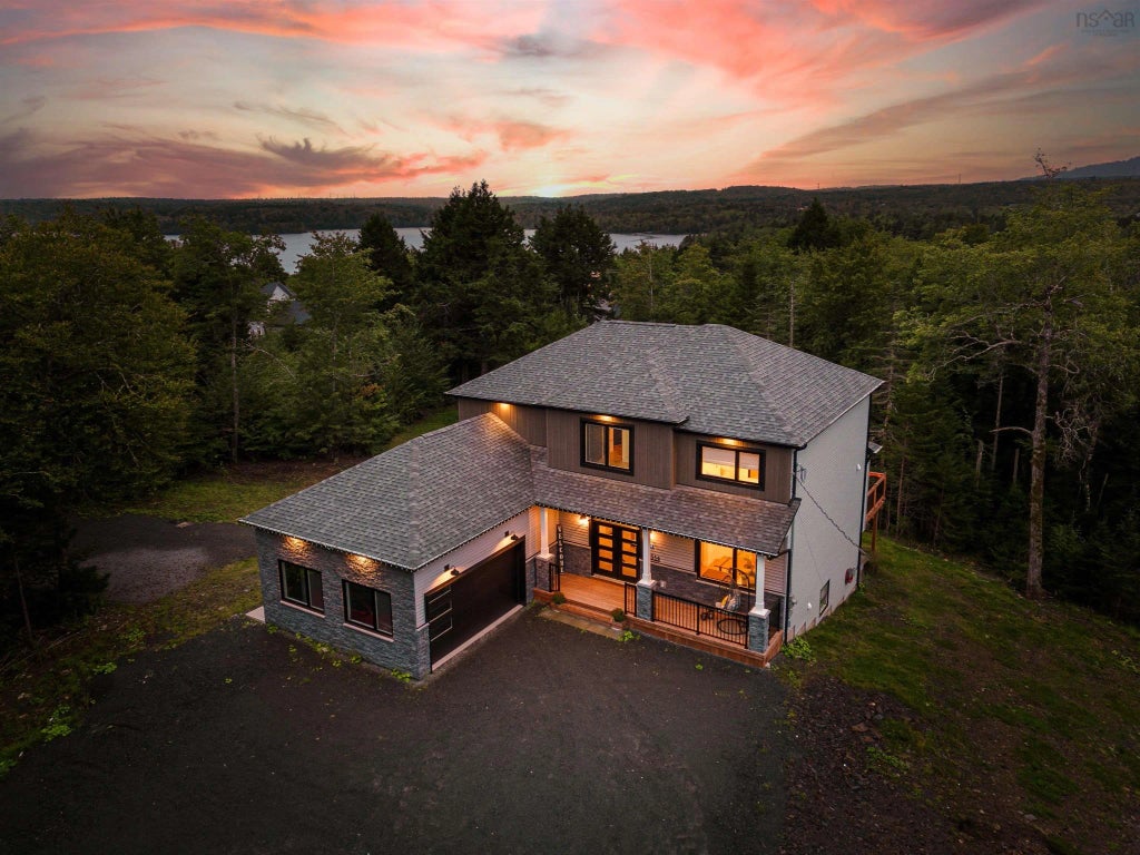 Welcome to your dream home! This 2-year-old luxury residence combines modern farmhouse charm with contemporary comfort on a private 2-acre lot, offering stunning views of McCabe Lake from its expansive deck. Inside, the main floor boasts 10-foot ceilings, a formal dining room, a private office, and a spacious living room with an electric fireplace and faux exposed beams. The kitchen is the heart of the home, featuring an oversized island, floor-to-ceiling cabinets, and a butler's pantry connected to the formal dining room. A custom mudroom connects to the 2-car garage entrance and main floor laundry room. The upper level offers four bedrooms, including a primary suite with a custom feature wall, exposed beams, double closets, and a luxurious ensuite with a freestanding tub, glass shower, double vanity, and beautiful tile flooring. Three additional bedrooms and a spacious main bathroom complete this level. The lower level is perfect for family living and entertainment, featuring a wet bar, a glassed-in wine cellar, a spacious rec room with walkout to access back covered stone deck, a full bathroom, a fifth bedroom, and a den or second office. This home includes a fully ducted heat pump system for year-round comfort. The outdoor space boasts a custom stone fire pit and ample parking. Located in the elegant Indigo Shores subdivision in Halifax, this property offers a luxurious lifestyle designed for entertaining large groups while still being very functional for your daily living . Contact us for a private viewing today and experience modern farmhouse luxury living!