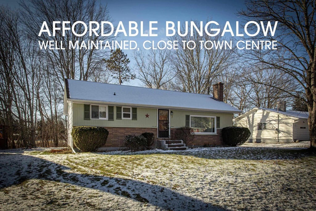 Excellent opportunity to build equity in an affordable home! Proudly maintained by the same owners for decades, this 3 bed, 1 bath bungalow sits one one of the best streets in town; within walking distance to medical clinic/hospital, schools, shops and many other amenities. Beautifully landscaped lot with double paved drive and mature trees. Large living room with hardwood flooring in great condition. Roof shingles 2018. Exterior paint 2022. All appliances are included in asking price. Available for immediate possession!