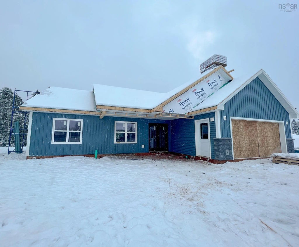 Fantastic Location! One level living in this brand new 1,582 sq ft, 3 BR home on a slab has the space & style you have been looking for! There is efficient infloor heat with an electric boiler & 4 zones + a heat pump. Lots of space for entertaining in the great room with the open concept floor plan that includes living/dining & kitchen area. The kitchen features a center island with extended countertop for bar stool seating & a pendant light above it, Benjamin Moore hardwood hale navy lower kitchen cabinets & cloud white upper cabinetry & two pantries, one on either side of the fridge & silver hardware. You also find pot lights in the kitchen/living & dining area & a door to your rear 19x8 concrete patio with brush finish & the back yard. The primary suite has a 4 pc ensuite with a black "soot" double vanity with attached tall linen cabinet, white tile floors, walk in tiled shower & glass sliding door with black finish, separate water closet for the toilet & a walk-in closet with built in shelving. There is a separate laundry room off of the mud room (that has an entrance to the garage) with barn wood ceramic flooring, a coat closet & built in bench for coats & shoes. The other side of the house has the other 2 BRs & the guest bath. Throughout the home there is luxury vinyl tile in the living areas & BRs & deluxe paint throughout the house. The garage has a remote door opener & is heated (one of the zones for the infloor). Outside you will find a paved driveway & walk way, a 18x8 concrete deck at the front door, Rockwell blue siding, a drilled well with a submersible pump, municipal sewer & finished landscaping with top soil & hydro-seeding. The home comes with an 8 year Lux warranty, 50 year transferable warranty on the roof shingles & the windows are white 30 year Atlantic Windows. There is Insulated R-24 exterior walls & interior garage walls & R-50 in the attic. Call today for your personal tour and information package!