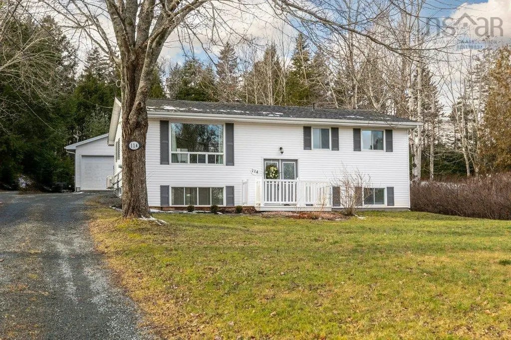 Welcome to 114 Charleswood Drive! Sought after neighborhood in Windsor Junction with MUNICIPAL WATER! This beautiful 4 bedroom with possible 5th (window does not meet egress), 2 bath home with detached 25' x 30' garage featuring 10 foot ceilings and a seperate 200amp panel. Nestled on a private, lovely fenced and well manicured lot with large deck and path leading to the woods. The main level features open concept bright kitchen with dining area, living room, 3 bedrooms and full bath complete this level. Downstairs you will find a family room with wet bar, full bath, bedroom and den. Close to all amenities, airport, walking trails, sports complex,restaurants and more! Many upgrades including kitchen with ceramic backsplash, laminate floors, ductless heat pump (2017), roof on house and garage approx 10yrs, new septic 3yrs ago, oil tank approx 2020, hot water tank 2021, 200amp electrical panel 2021, electric fireplace 2022. Don't delay, call today! Call for your private viewing. This won't last long!