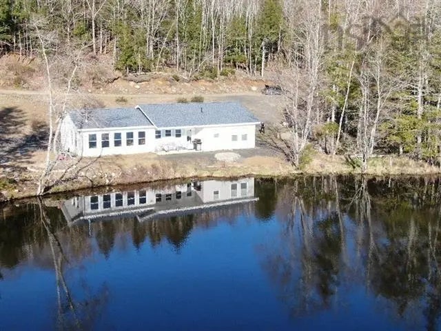 Lake front with 1200 ft of shoreline. Newer Bungalow, private location with 49 acres of privacy backed by a branch of the LaHave River. Wake up to the sound of the birds or the peaceful sound of gentle breezes and gaze at the lake from the bank of windows facing the lake. A large living room (24.6x20) with a cozy woodstove in one corner make you want to relax and stay awhile. Just beyond is the kitchen with a nice patio just outside. Three generous bedrooms plus a good size bath with an air jet tub complete the picture. Built n a slab. There is lots of space to add outbuilding or a garage too. The balance of acreage behind the house affords an owner many opportunities from privacy to perhaps a camping area. Let your imagination loose to decide.