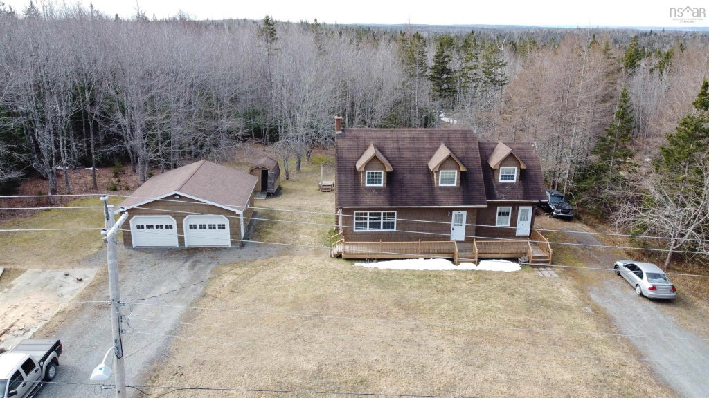 Peace and tranquility await the new buyers. Welcome to this spacious Cape Cod home (approx. 1800 sq ft) on a 200’ x 200’ lot (.92 acre) situated in the small country community of Whiteside. Conveniently located within 10 mins to a high school, elementary school, ice rink, 15 mins to Port Hawkesbury, 5 mins to Strait Richmond Hospital, nearby shopping and other amenities. This lovely home features a large front deck, 3 bedrooms and 1.5 baths. Nice size eat-in kitchen with modern cabinetry, pantry, island with breakfast bar and walk-out to front deck. Separate dining area with picture window. Hardwood floors in LR and DR. Living room features a cozy electric fireplace with many windows loaded with natural sunlight. Upper floor features a huge Primary bedroom with His & Hers closets and 2 other bedrooms plus a 4 piece bath. Finished basement with walk-out to rear private yard, additional family room and play room/games room. Separate double car garage 24’ x 24’, insulated, drywalled, wired, heated and on a concrete slab. This home is heated with Electric baseboard heaters and a wood burning furnace. Close proximity to Hwy 4. Dundee Golf course, Pondville Beach D’Escousse Marina, fishing, ATV trails + much more!