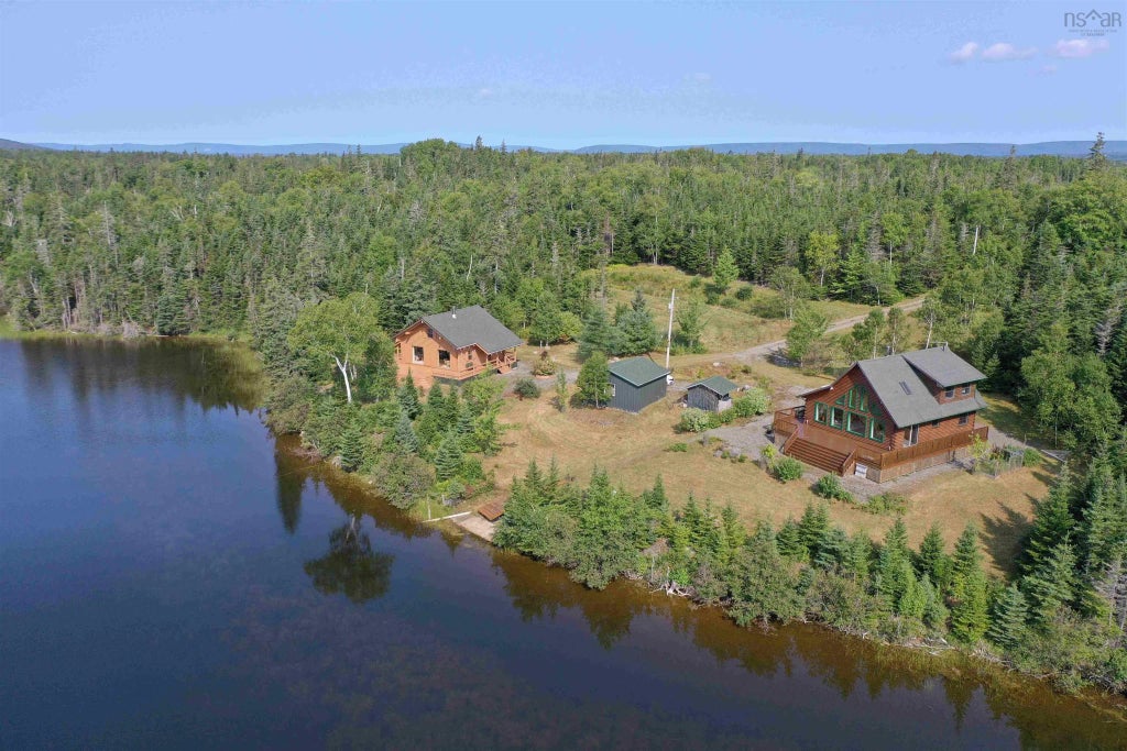 SPECIAL DISCOUNTED PRICE OFFER to attract a quick sale. This estate property is a private oasis that delivers on every level- 19 pristine acres on the World Famous Bras d'Or Lake in a sheltered pond surrounded by miles of sand beaches. The Main Chalet features a great room window wall that lets you take in the magnificent surrounding views while delivering natural light to the warm comfort of this signature log home. The Home also has a fully screened sun-room and large wrap around deck for extended social living space. Add a social kitchen, cozy wood stove, a sun drenched loft plus 2 large bedrooms and this is a get-away for all seasons. The 2 bedroom guest log cabin is equally impressive with nearly 1400 sf living space, open concept with a custom cedar staircase, wood stove & large cozy loft space. Both the Chalet & Cottage have been impeccably maintained and have a full open & dry concrete foundation for added storage. These 2 homes are offered fully furnished (except for personal items), along with the garage, shed & dock. Cape Breton Island continues to attract folks for its natural beauty & lifestyle -this is the place where lifelong friendships & memories are made. This property is IDEAL for an extended Family & Friends retreat !