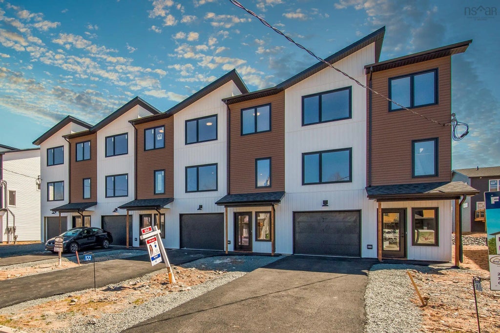 Savvy Homes Construction is excited to offer "The Guardians On Tyler" in the popular White Estates Community, Elmsdale NS.Community oriented and Family friendly area at 25 minutes from Dartmouth Crossings and from Halifax and at 10 minutes from the airport surrounded by lots of amenities and great schools. Watch your kids play safely on the cul-de-sac or in the back yard from your balcony. The Guardians are Modern & Warm Townhouses with black windows, black garage and main doors. Prepare to be impressed as you enter the bright welcoming ground level to a generous size rec-room with a full bathroom and a walkout door to the flat landscaped backyard to make the ground level a perfect space for family entertainment or add a door to make it a perfect separate space for a teenage child or visiting in-laws. The main level has it all with its open concept of a 19’x15’ living room, a kitchen with island, a dining room, and the powder room. Second level has 3bedrooms, the master bedroom with ensuite bath and a walk in closet and two bedrooms sharing another bathroom plus a linen closet. The guardians are efficiently heated with electric heat and a heat pump for both heating and cooling and has a garage forgetting into a “comfortable” car or bonus storage. Offer today to get the chance to chose your finishes and upgrades from the builder’s collection. Open house is at the model 122 Tyler St.